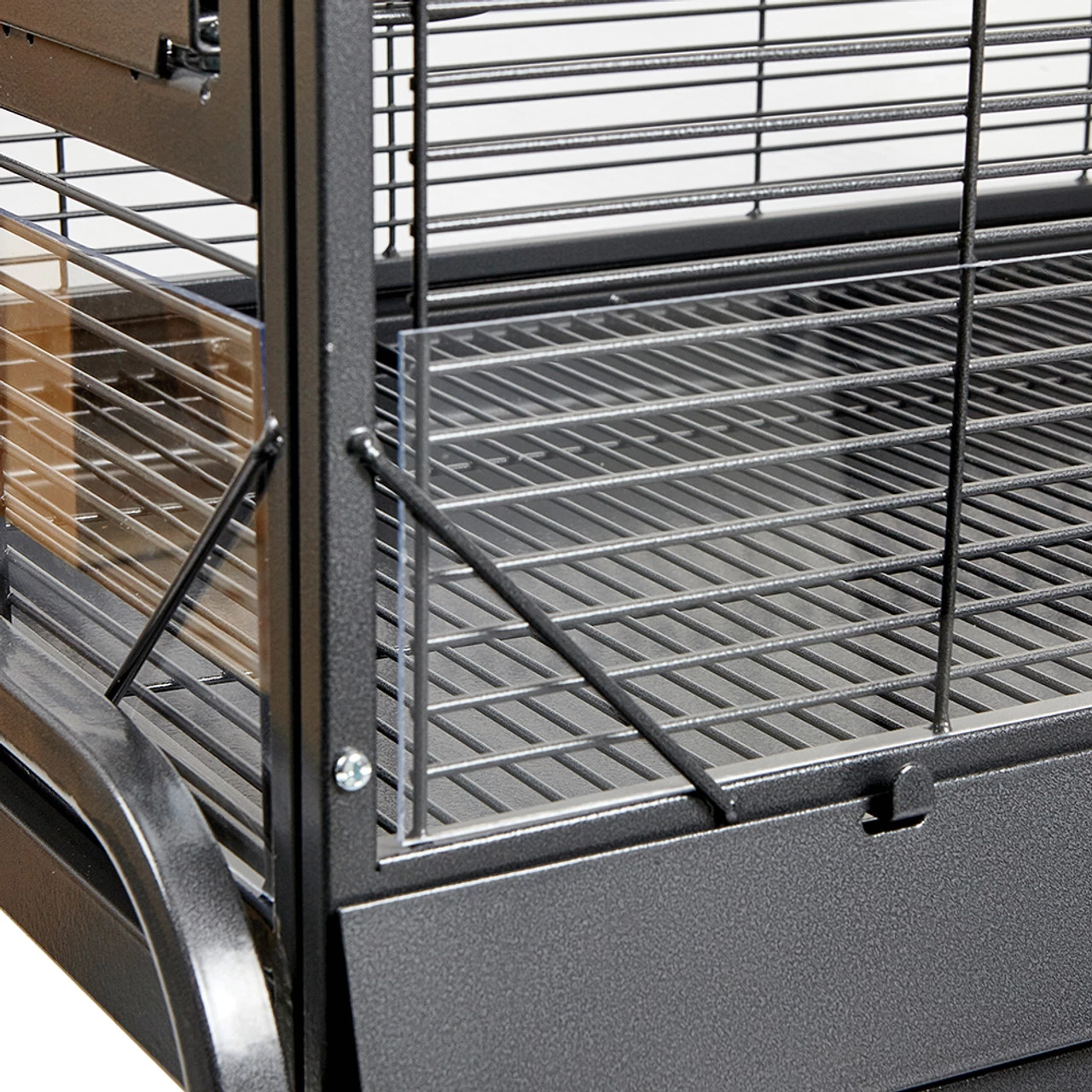 For time outside of their cage, your Parrot can enjoy using the drop down landing platform or the top opening section.