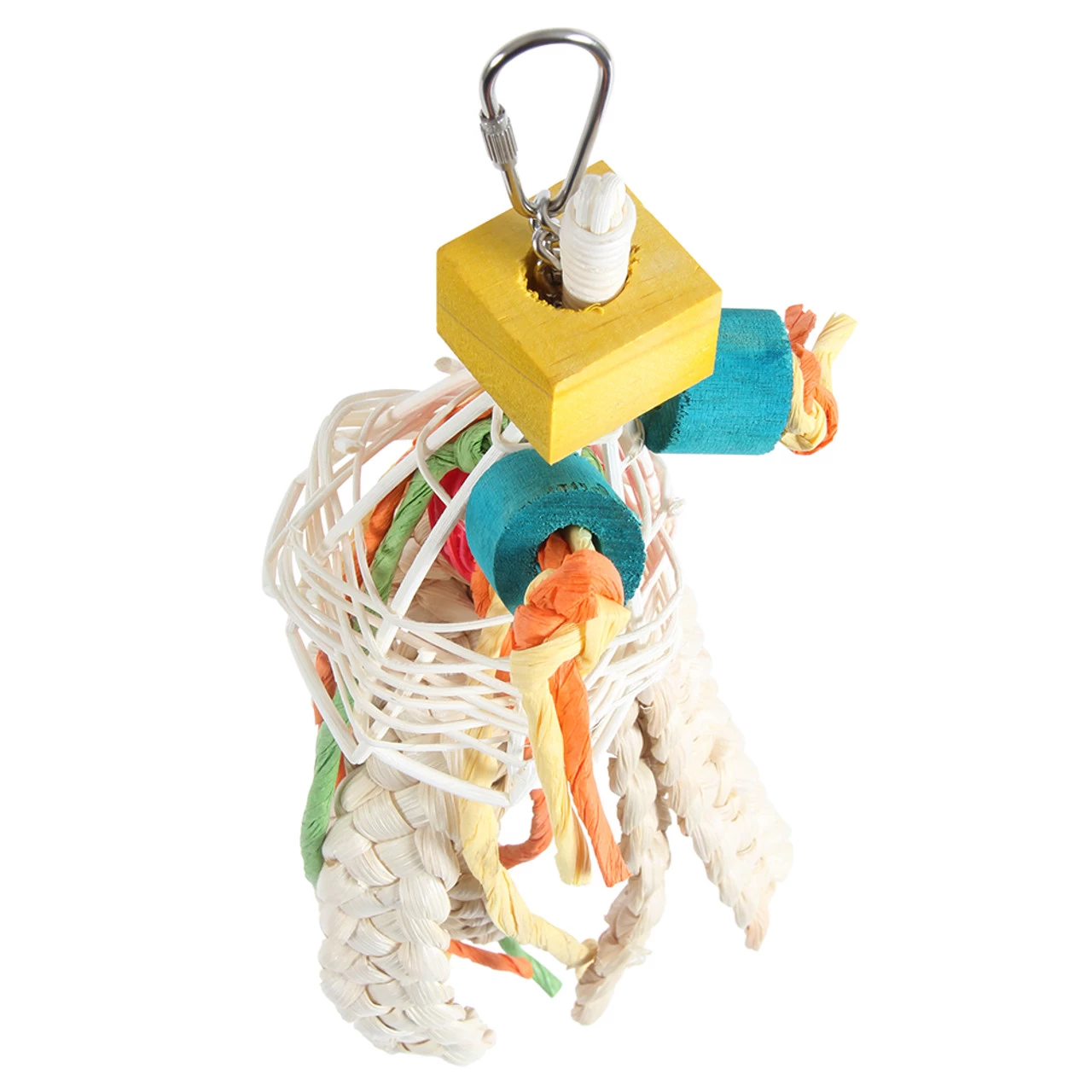 Use the metal pear link provided to quickly and securely fasten this Apollo Parrot Toy – Small to your bird’s cage or play gym stand.