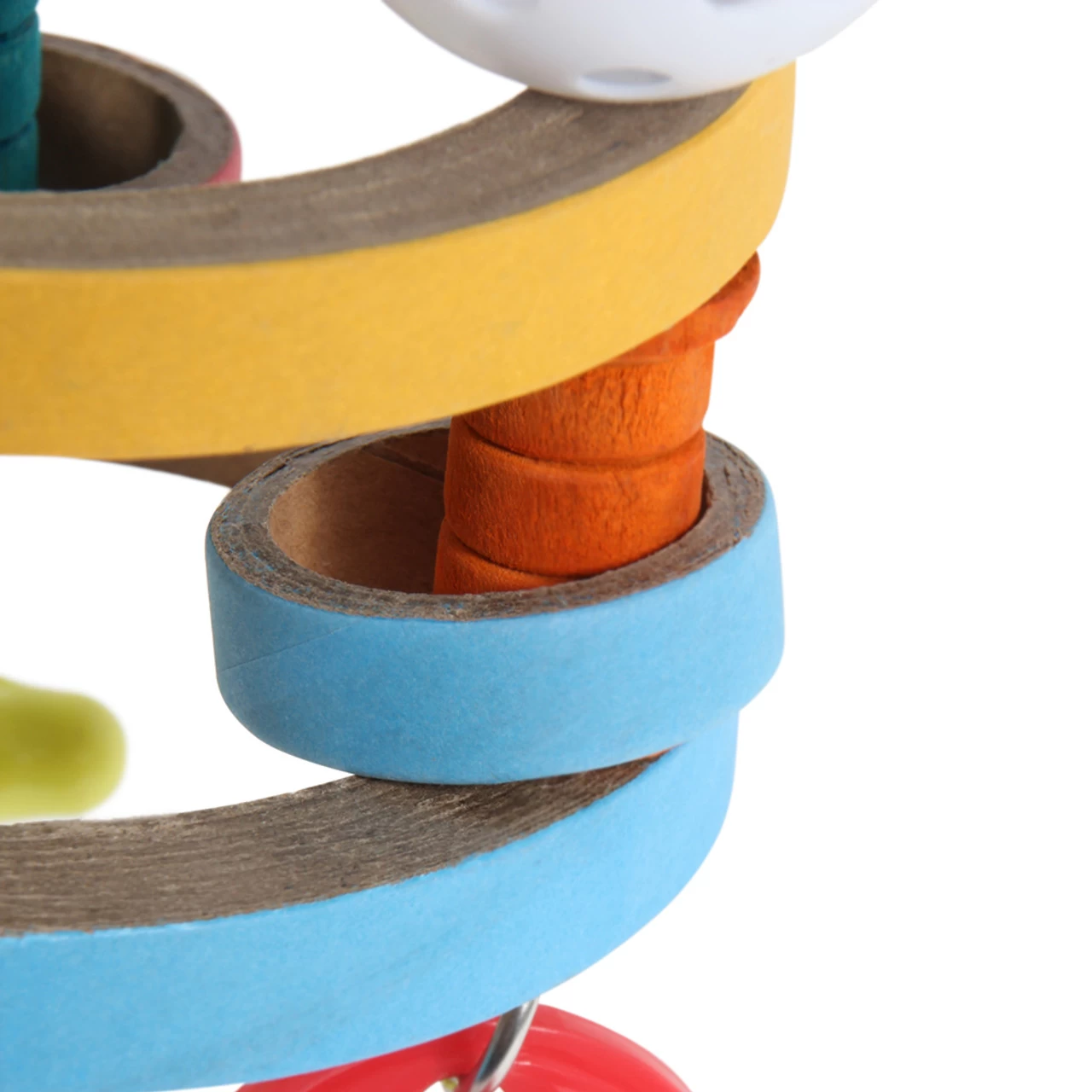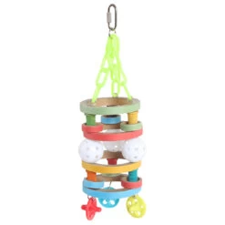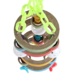 The UFO shapes attached to the bottom are great for puzzle loving Parrots, as they’ll spend time working out a way to remove them. The holes can also be used to fasten on more materials.