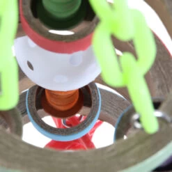 Sandwiched in the middle layer are three small whiffle balls, the holes are great for tying on even more materials. Plus, you to push treats inside for your Parrot to enjoy finding.