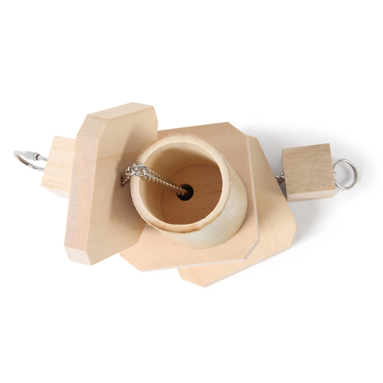 Use the metal pear link provided to quickly and securely fasten this Bamboo Cups Chewable Foraging Parrot Toy – Large to your bird’s cage or play gym stand.