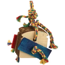 Chewing on the wood keeps your Parrot’s beak in good condition, and the knotted cotton rope used to fasten all the layers together provides material for your Parrot to preen; which can help reduce unwanted feather destruction behaviours.