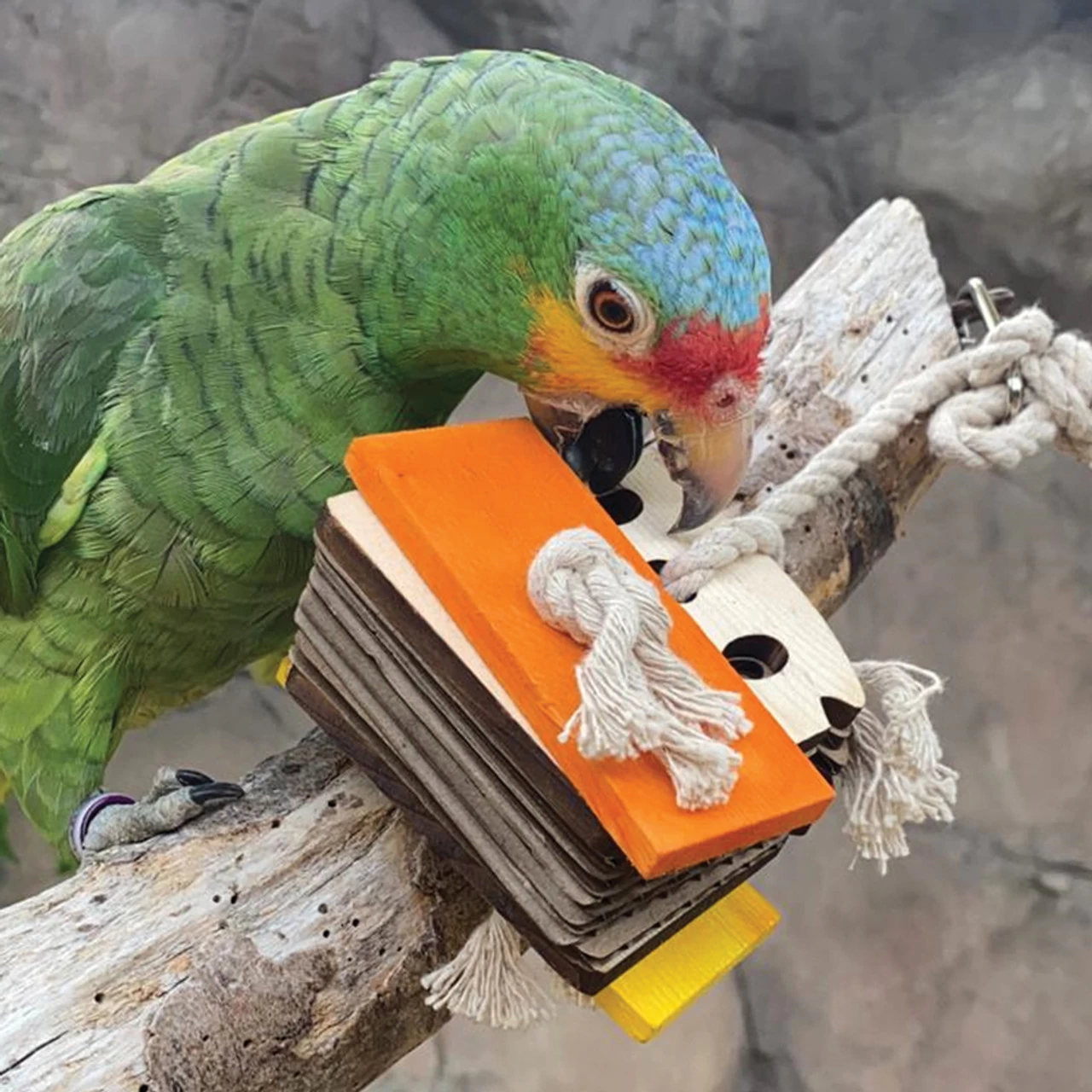 Use the spaces to hide your Parrot’s favourite foods or treats, then watch as they work out how to get to retrieve them from inside this Birdie Bread Chewable Foraging Toy.