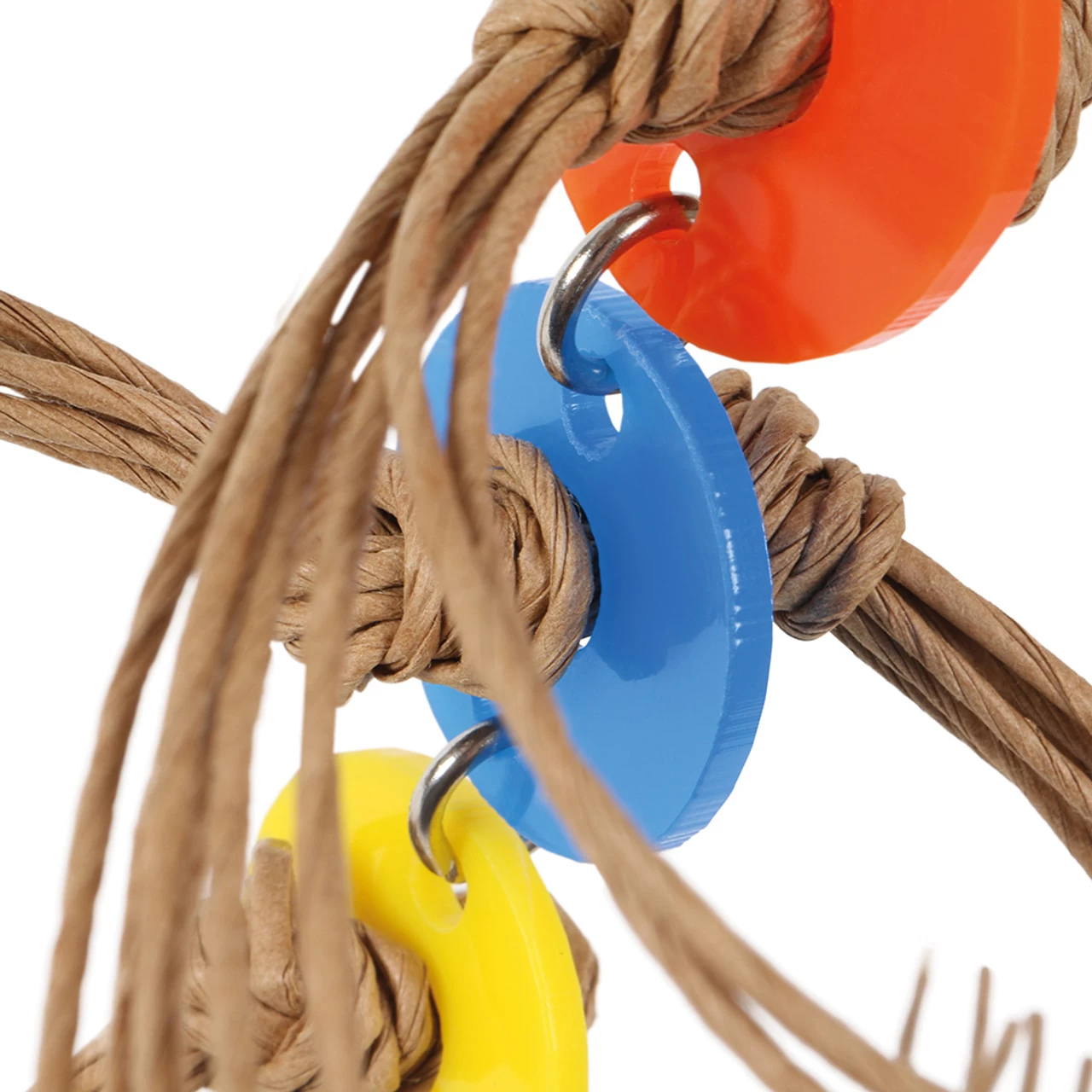 With lengths of knotted paper rope this Bizzy Paper Rope Parrot Toy from Zoo-Max brings many happy hours of shredding, chewing and preening fun to your Parrot.