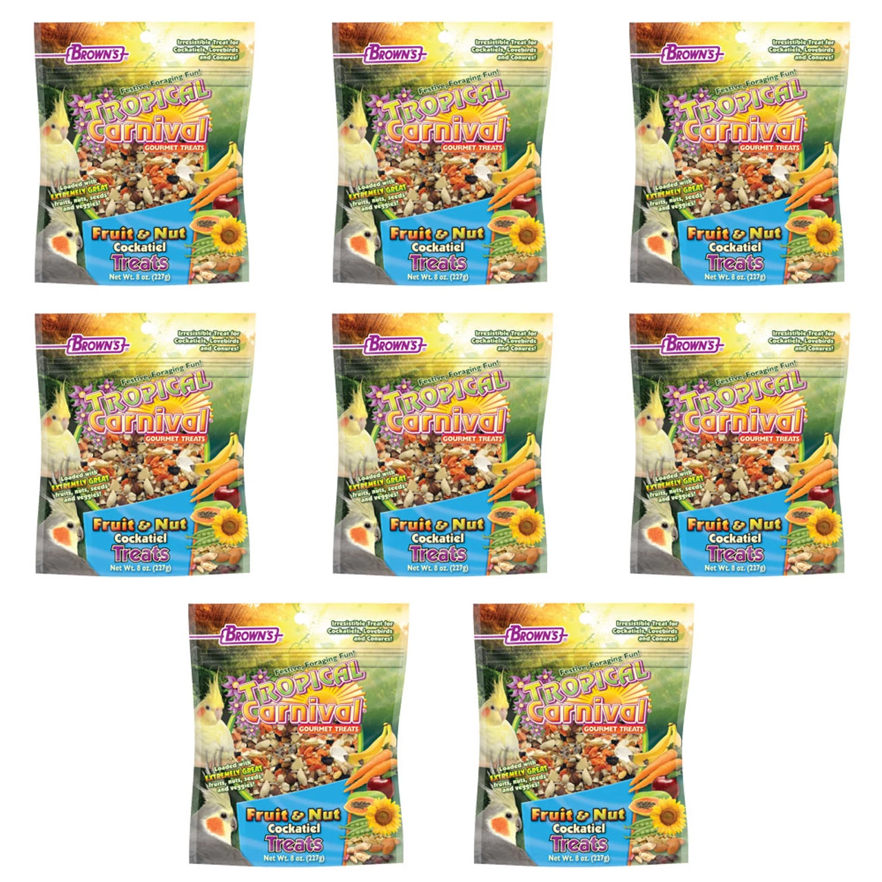 These Brown’s Fruit and Nut Carnival Small Parrot Treat Mix are packed with lots of wholesome ingredients for your Parrot to enjoy.