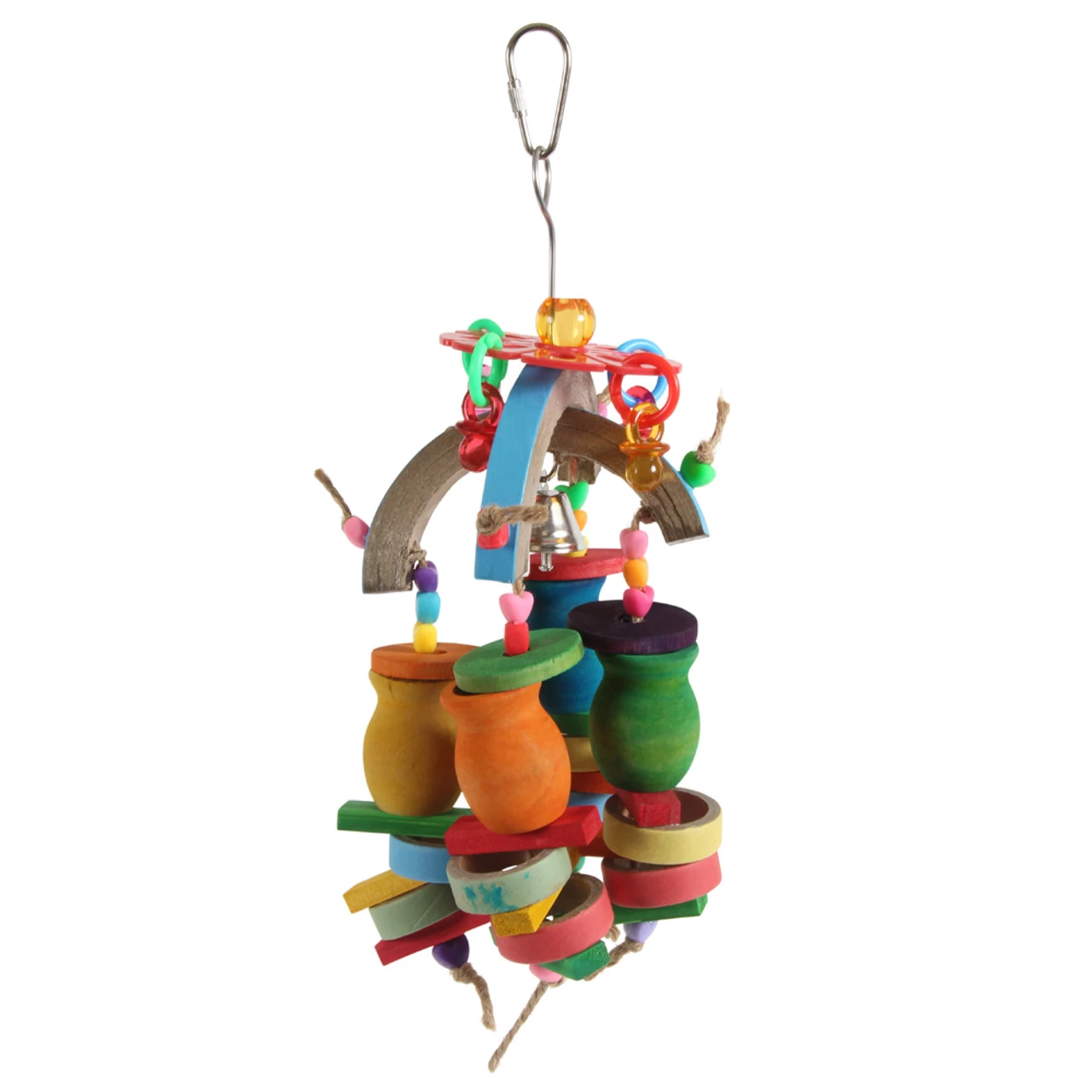 Use the metal pear link provided to quickly and securely fasten this Candle Cups Carousel to your bird’s cage or play gym stand.