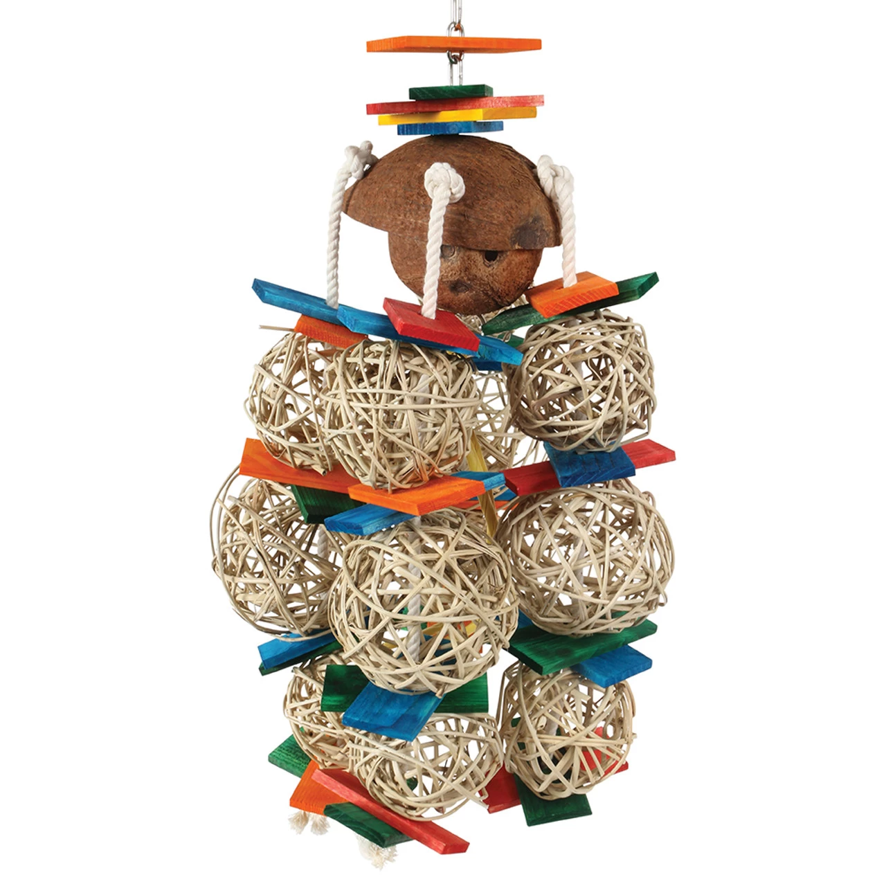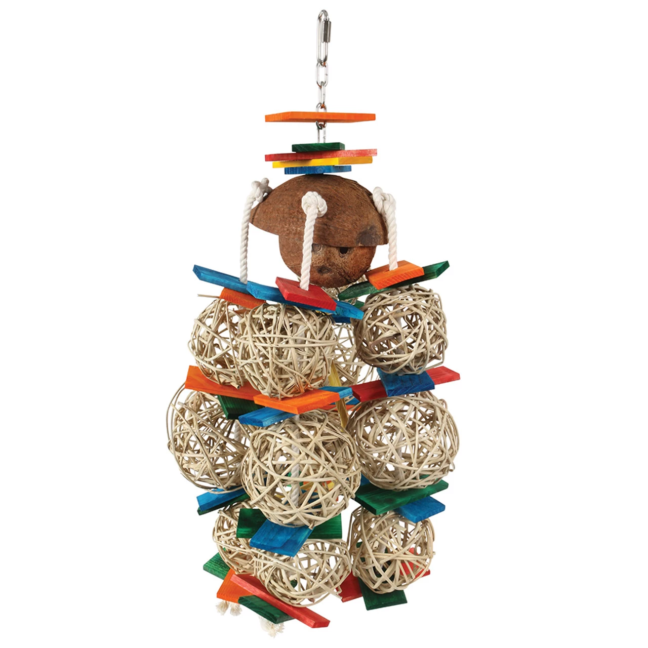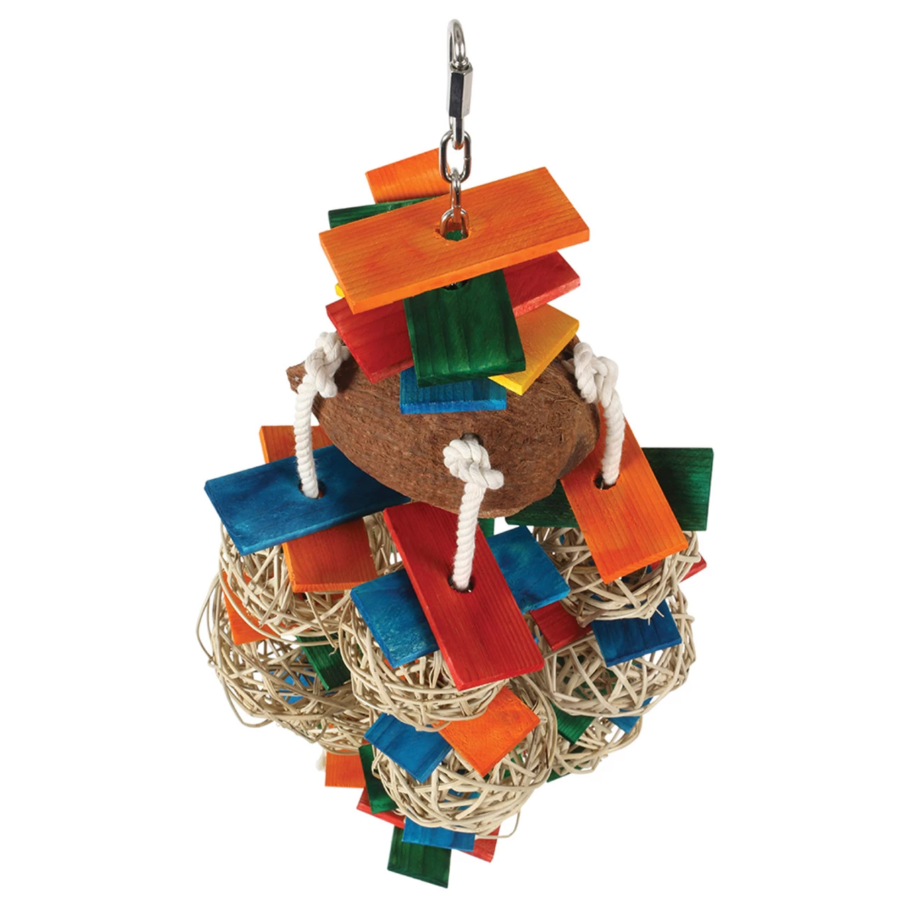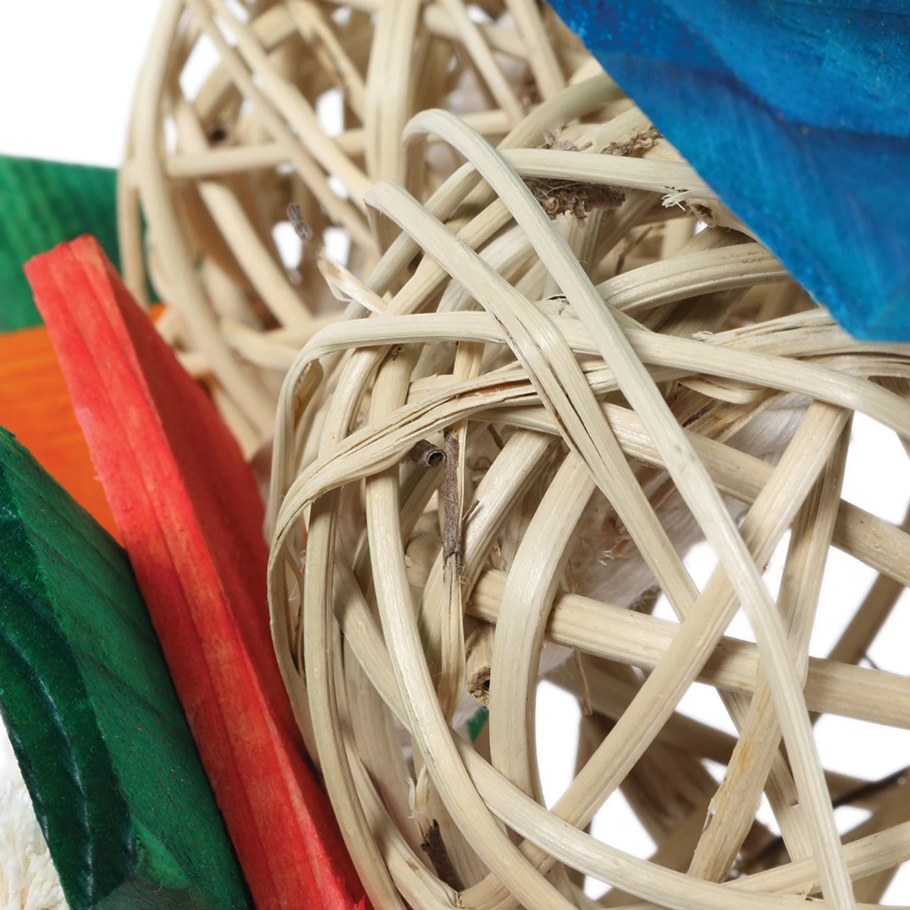 The coloured wood slats provide plenty of material for your Parrot to chew; helping to keep their beak nice and trim along the way. Plus, the knotted paper and cotton rope is fun to unravel for further mental stimulation.