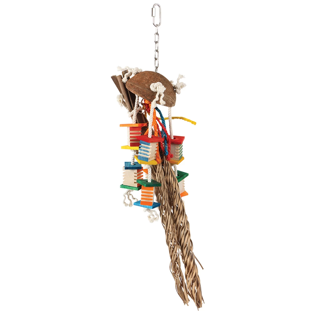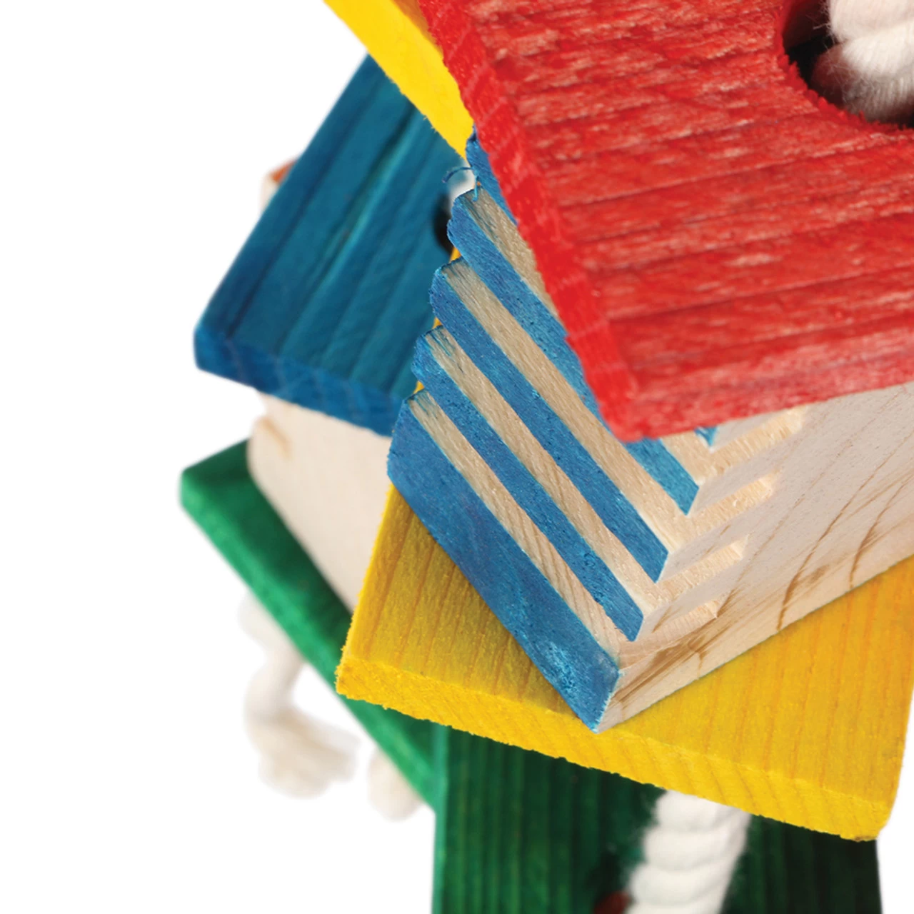 Perfect for beaks that love to chew and forage, with lot of natural materials to chew alongside colourful wood slats and groovy blocks, helping to keep their ever-growing beak healthy and trim.