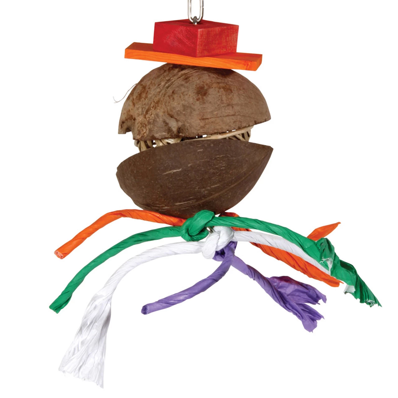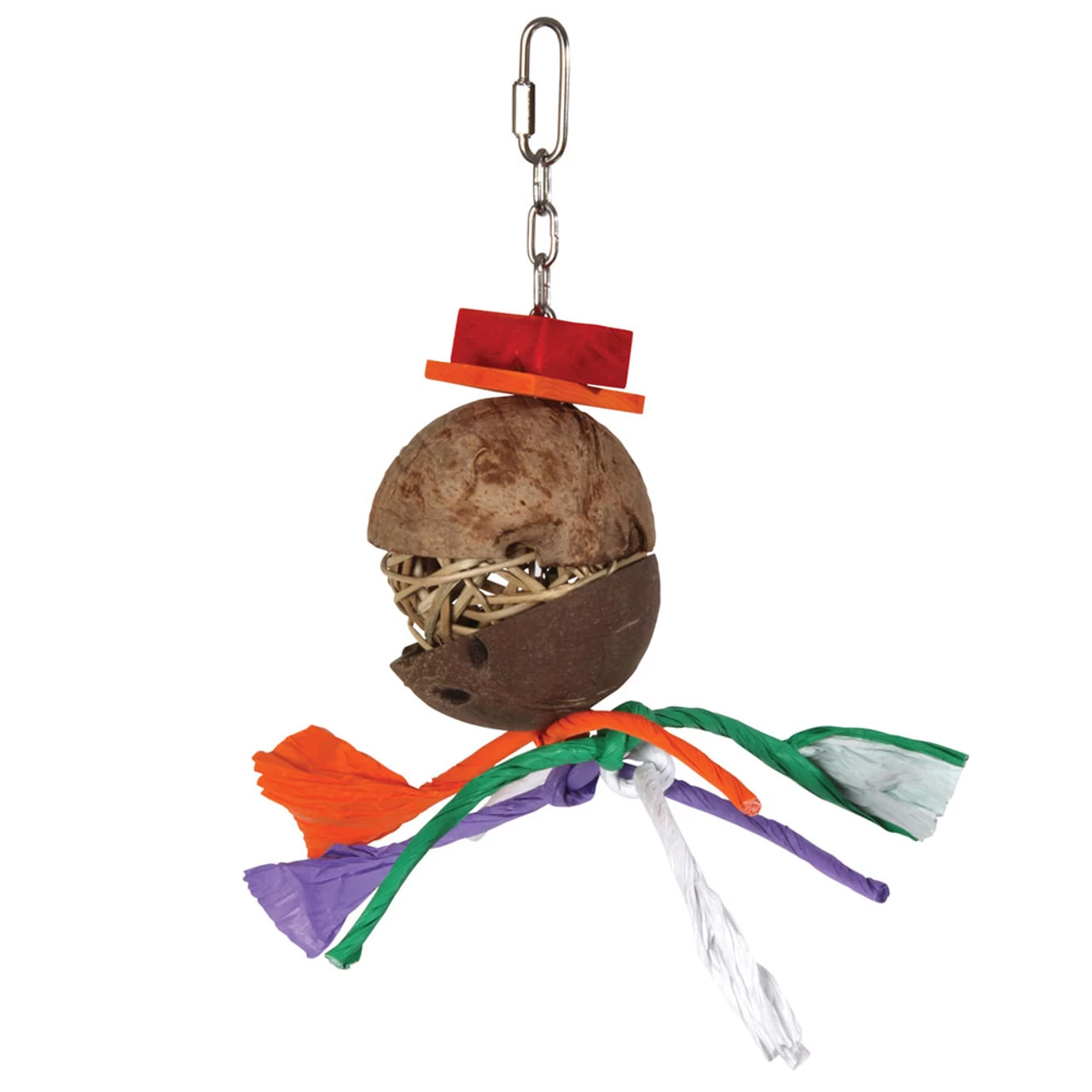 Your Parrot is going to love exploring this Coco Surprise Chewable Foraging Parrot Toy, especially once you’ve added some favourite rewards inside the large woven vine ball inside the coconut shell halves.