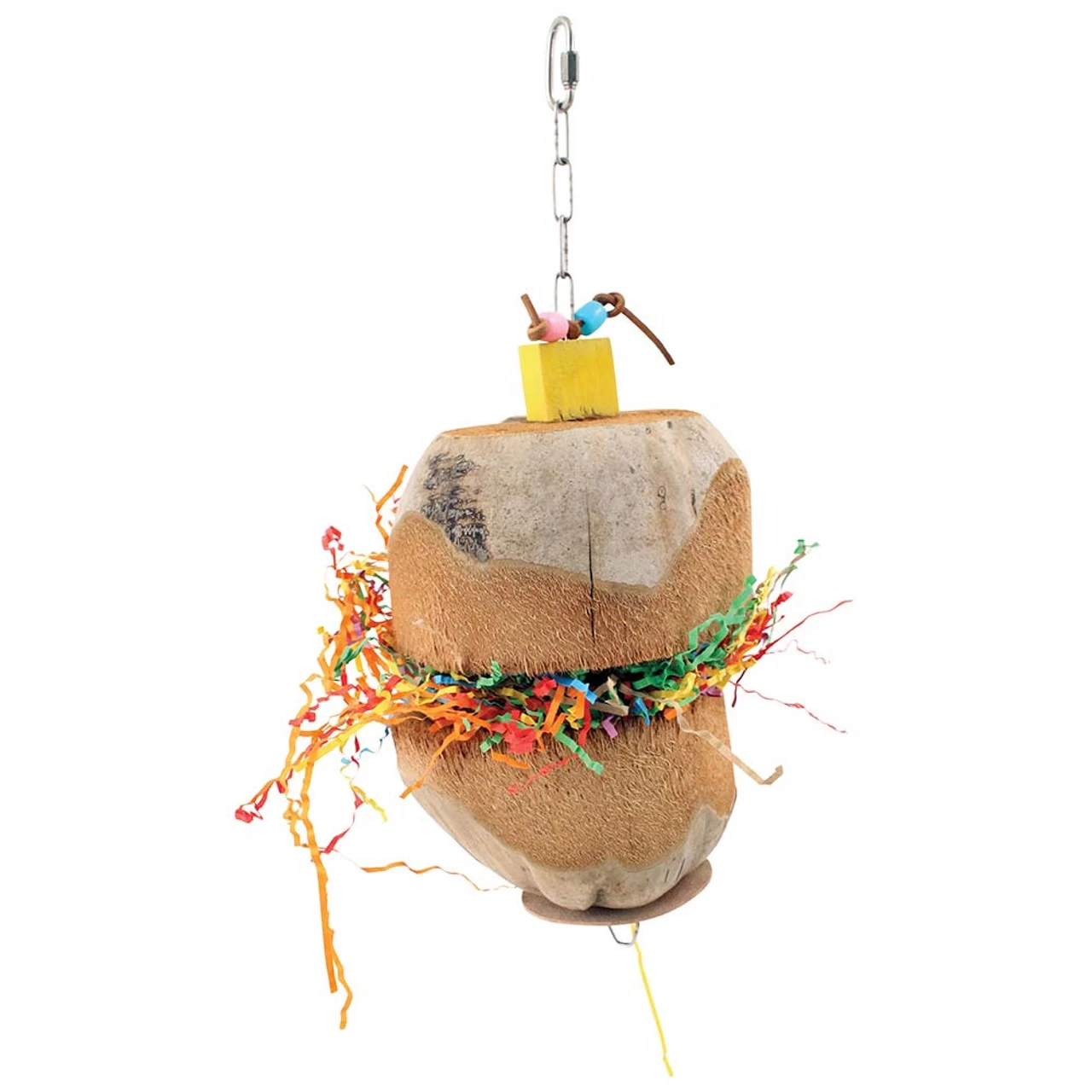 Your Parrot can enjoy two of their favourite things, foraging and chewing with this Coconut Treasure Chest Parrot Toy.