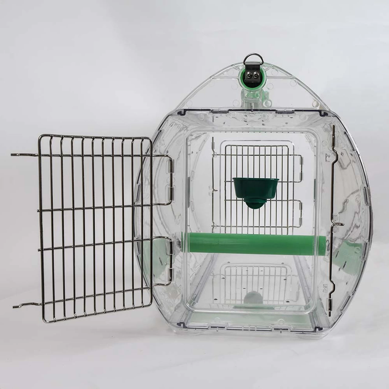 The Large Perch and Go Polycarbonate Parrot Carrier’s durable, clear polycarbonate design allows your feathered friend a 360-degree view, which can help alleviate stress. Plus, it makes it easier for you to monitor your bird while travelling.