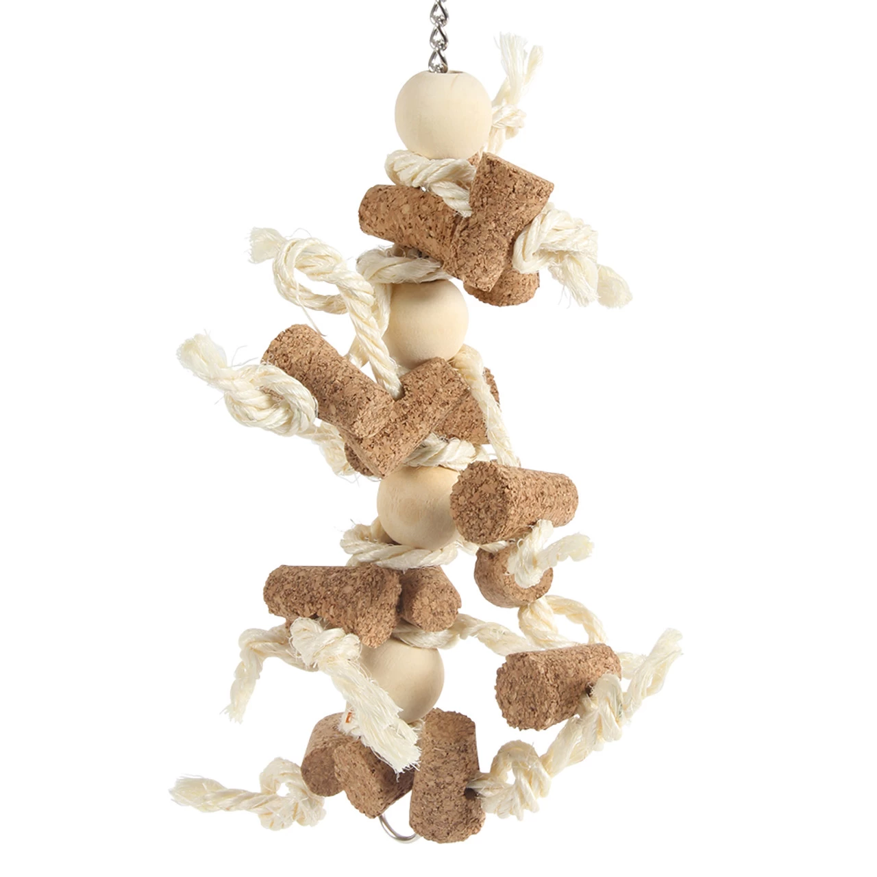 The soft cork pieces have been fastened onto lengths of knotted sisal rope. Use the metal pear link provided to quickly and securely fasten this Cork Chaos to your bird’s cage or play gym stand.