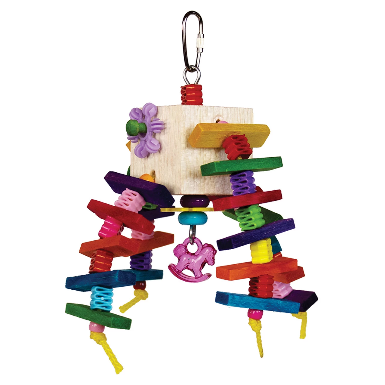 Cascading from each side of the natural balsa wood cube are ‘legs’ with even more balsa wood pieces to entertain your Parrot with.