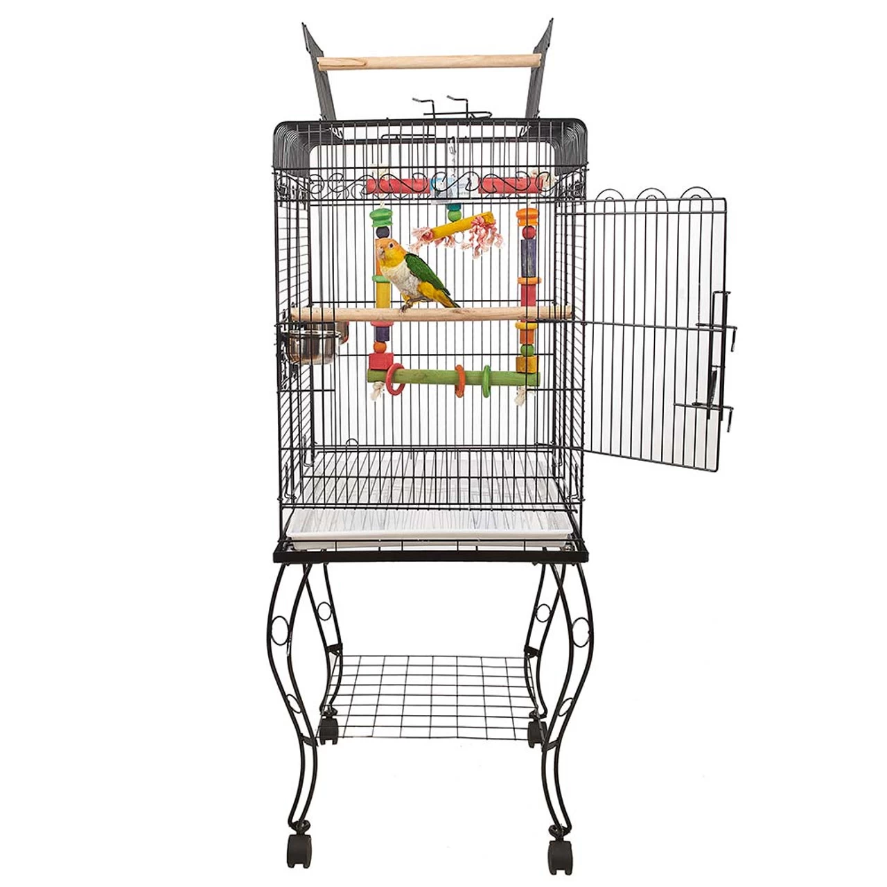 The top opening sections can be used alongside one of the wood perches supplied to create a place for your Parrot to perch and enjoy the view. You can easily attach a few toys to either the perch or the bars creating a fun play area.