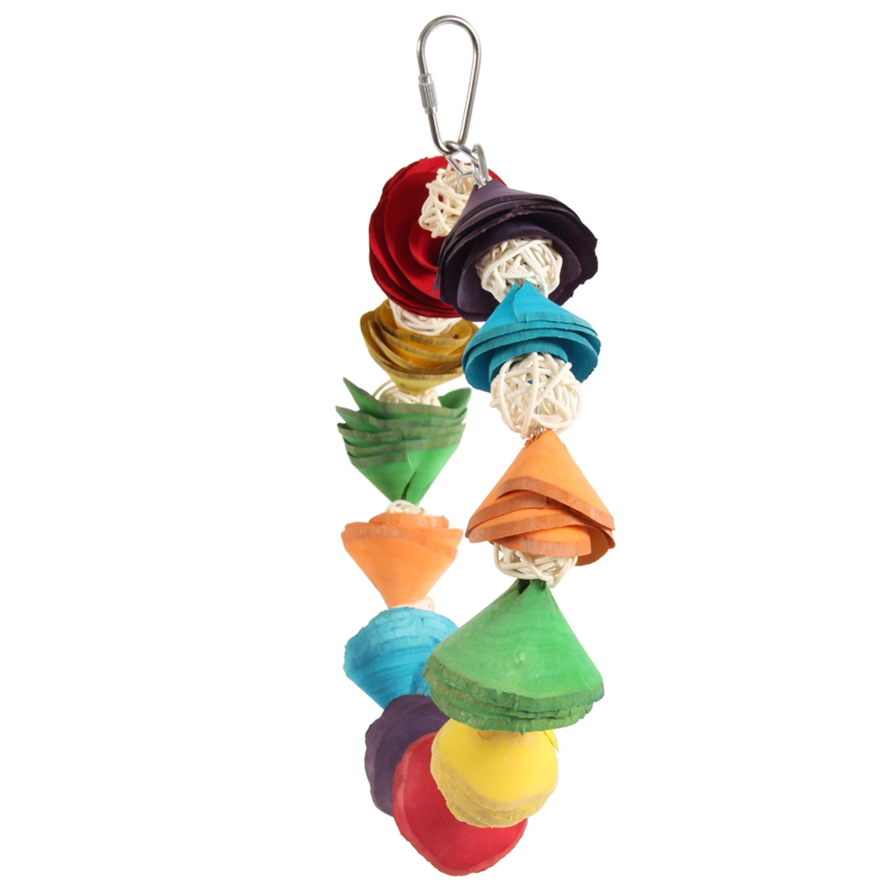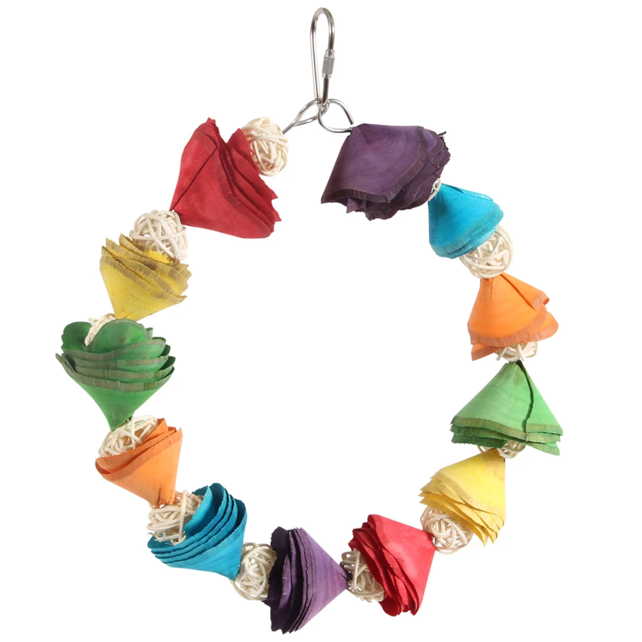 This Hawaii Garland Parrot Toy has lots of coloured wood ‘petal’ shaped pieces, plus mini vine munch balls to keep your Parrot entertained.