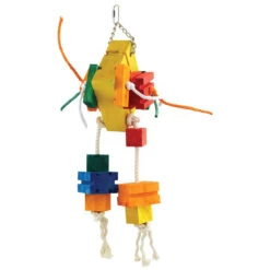 This Hector Wood and Rope Parrot Toy hangs on a length of metal chain for strength and durability.