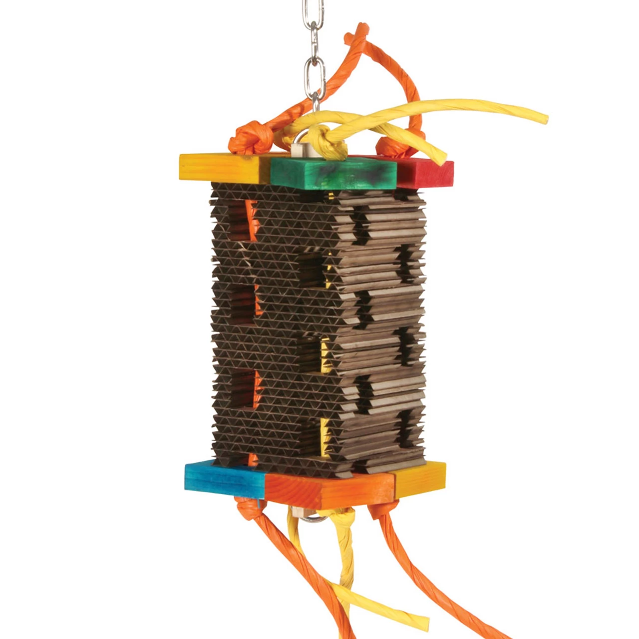 This High Tower Foraging Parrot Toy – Small is great fun to chew, rip and shred. Push larger treats inside the gap and smaller rewards into the corrugated sections for your bird to find and retrieve, providing essential mental stimulation.