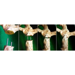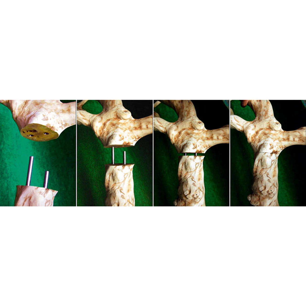 The tree is sawn near the crown and fitted with stainless steel rods and tubing so you can safely and securely slot the two parts back together in seconds.