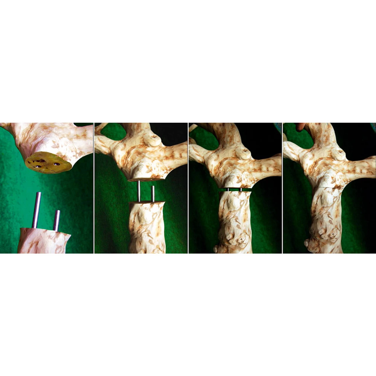 Each Java Duo Tree – Medium is then debarked, cleaned, hand-sanded and then oven-baked for a month to achieve optimum hardness. Then a base is constructed to match the size and shape of each unique tree, castors are added and the tree is complete.