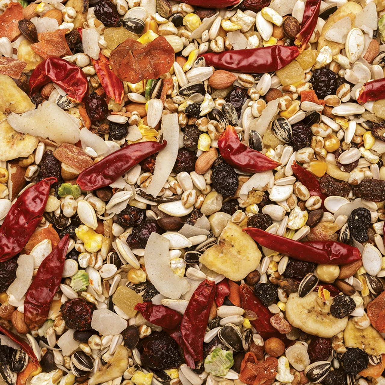 A splendid food for larger Parrots, with 25 different ingredients including 57% fruit and nuts. Help your bird reduce their daily fat intake. The rich variety of ingredients provides a mix full of different tastes and texture for an interesting meal every time.