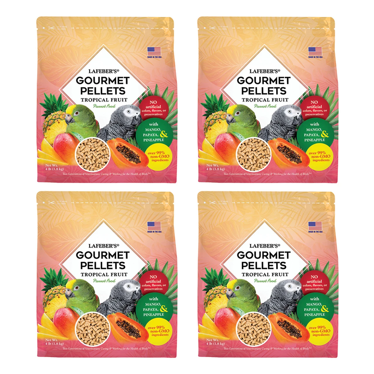 With no added sugar or fructose, no artificial colours, flavours or preservatives, these tropical fruit flavoured Lafeber Gourmet Pellets provide a nutritionally balanced food for African Greys, Amazons and similar sized Parrots.