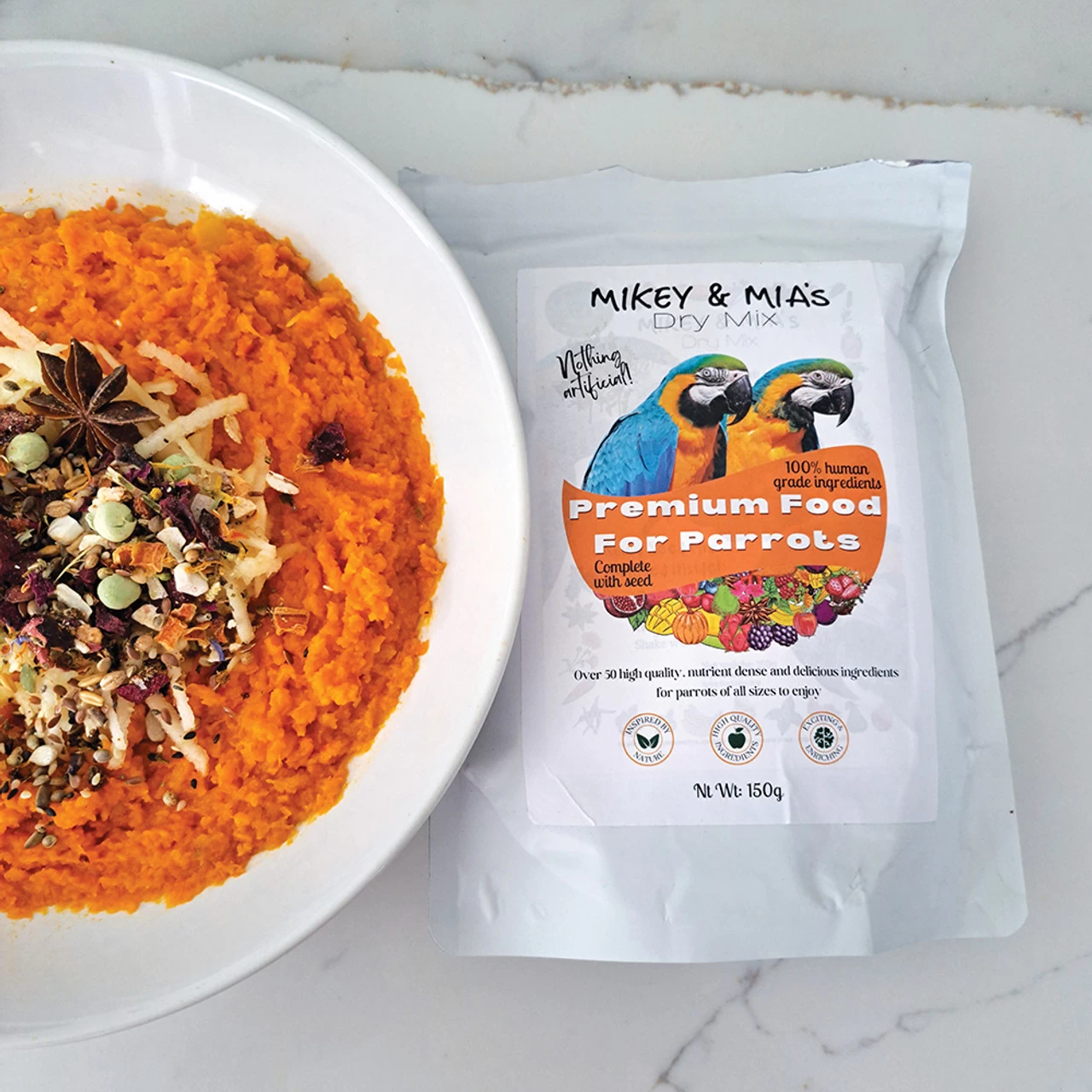Feed Mikey and Mia’s Dry Mix Healthy Parrot Food as part of a healthy nutritionally balanced diet. Add it to your feathered friends chop, offer it in foraging toys or sprinkle over your Parrot’s pellets.