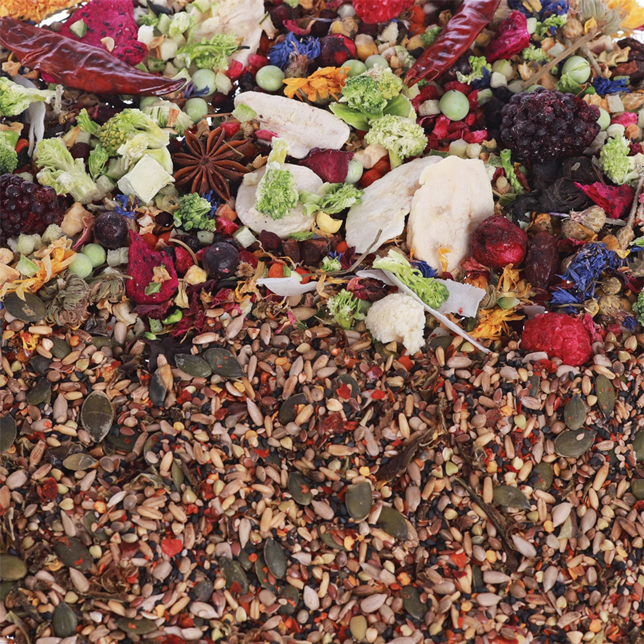 Developed by the Parronts of social media stars Mikey & Mia the Macaws to provide your beaky buddy with an exciting medley of freeze-dried fruits and vegetable, dried flowers, herbs, and spices, plus a selection of seeds.