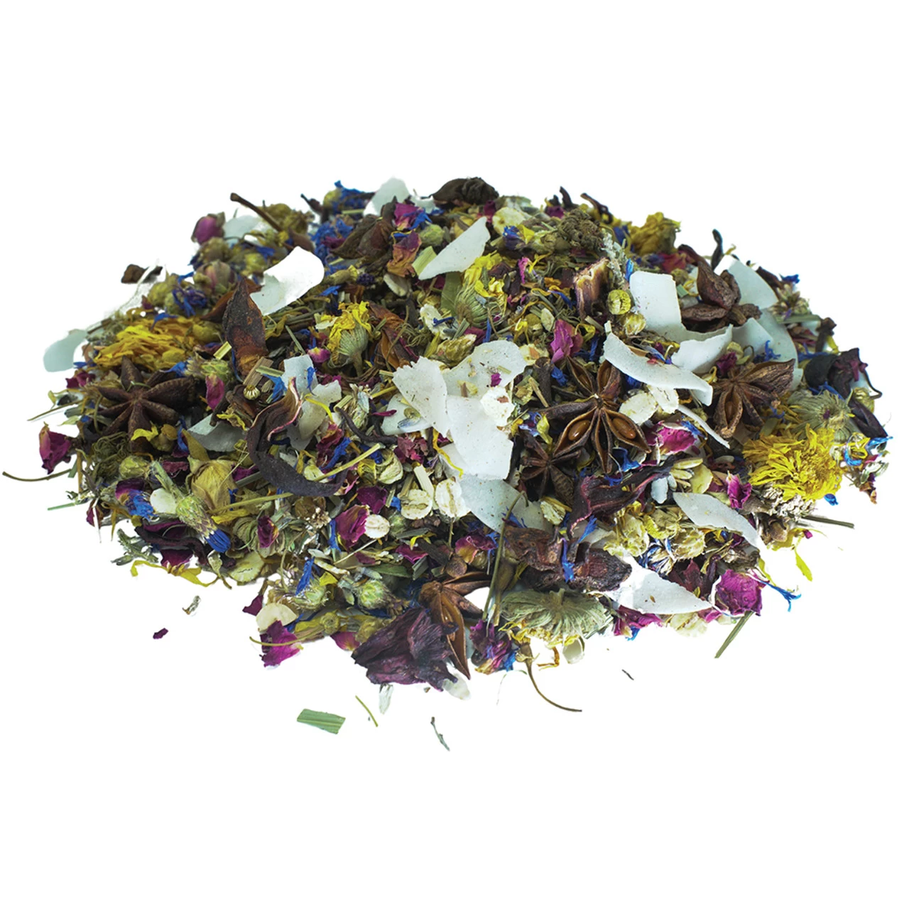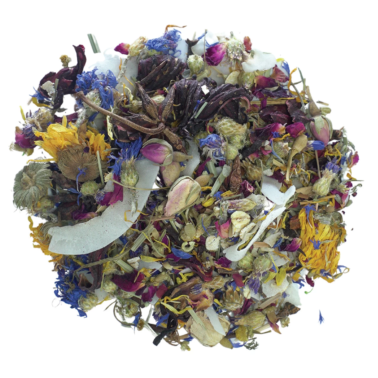 The mix of dried flowers and coconut are nutritious and beak-wateringly good.