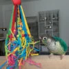 As your Parrot plays, a shiny metal bell happily chimes away, adding sounds noise loving Parrots love.