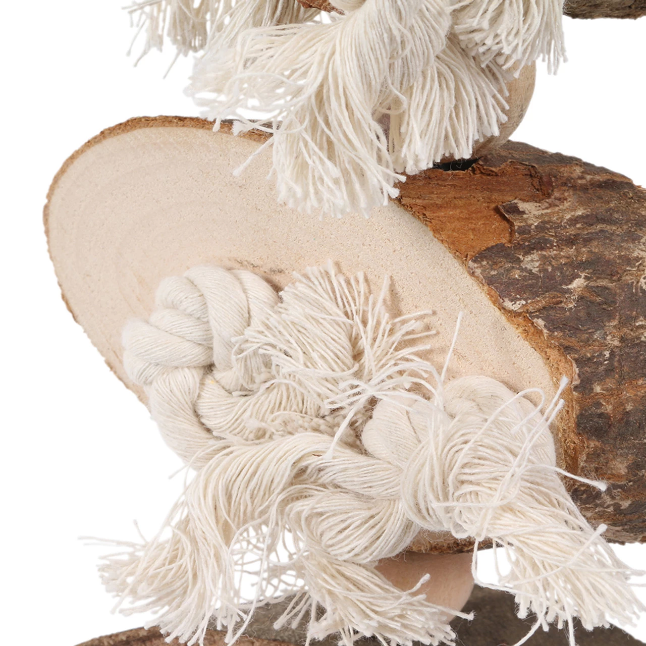The uneven shape and natural texture of the wood and rope helps to keep feet exercised and healthy.