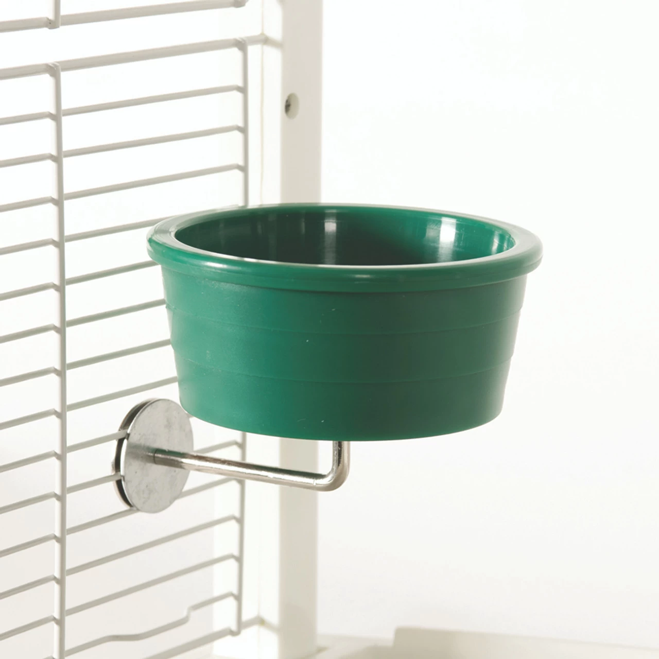 The stainless-steel holder quickly secures to most cage bars.