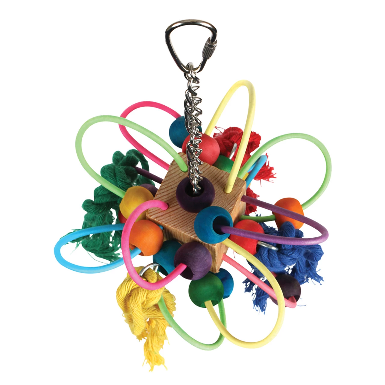 Plus, the paper ‘wire’ wood beads and wood cube can all be chewed, helping to keep your feathered friend’s ever-growing beak healthy and trim.