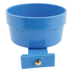 Bolt the holder securely to the cage bars and then simply twist the cup to fasten or remove (don`t leave just the holder in the cage for long periods though).