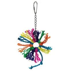 Vibrantly coloured sisal ropes are wound around a metal hoop making a rigid yet chewable toy for your bird. There’s even a mini tarzan styled rope part for your bird to really get a grip.