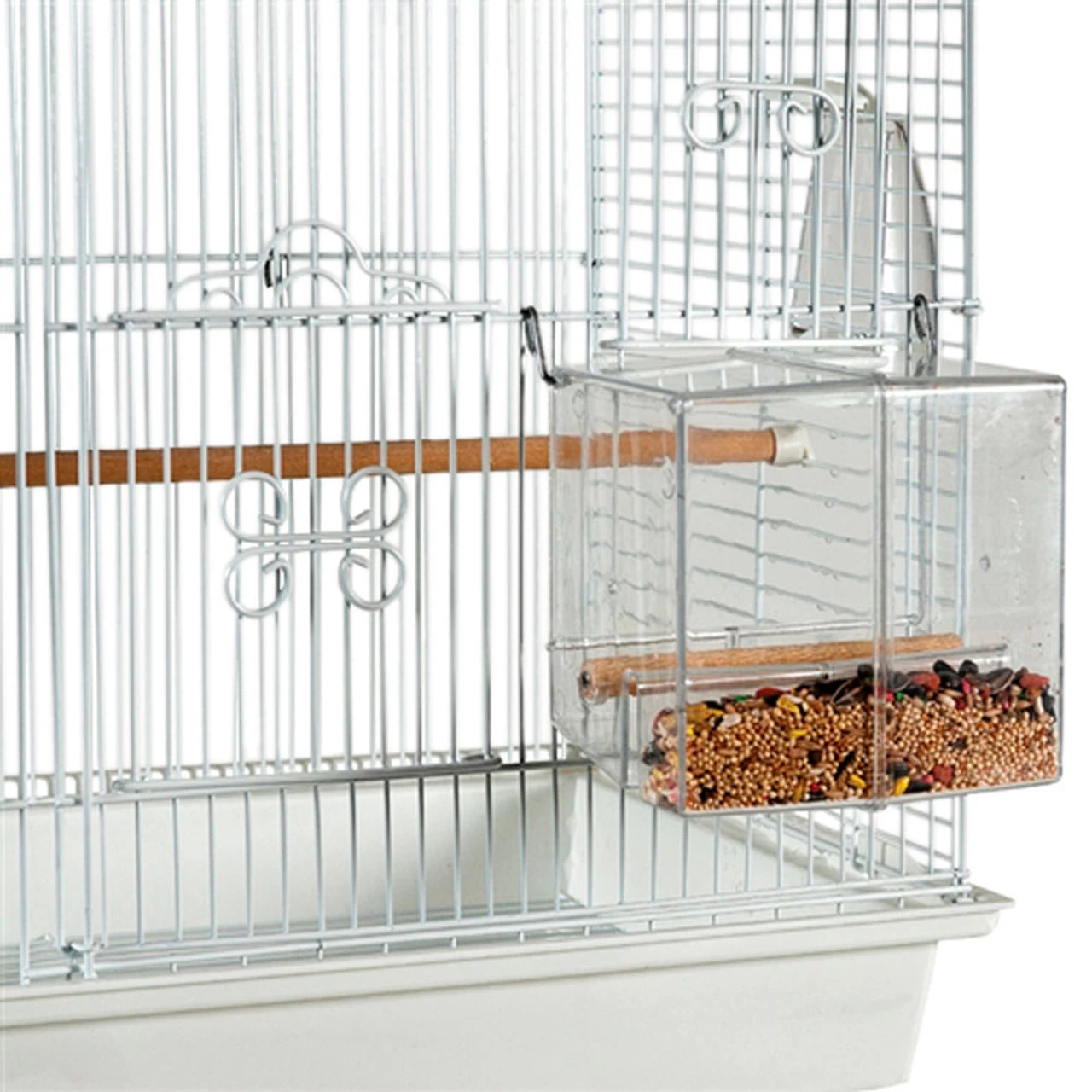 As your bird sits inside the Seed Corral any dropped seeds or empty husks remain inside, either falling back into the main reservoir or into the backup section around the perch. So now less seed and waste litters your bird`s cage, keeping it cleaner and healthier.