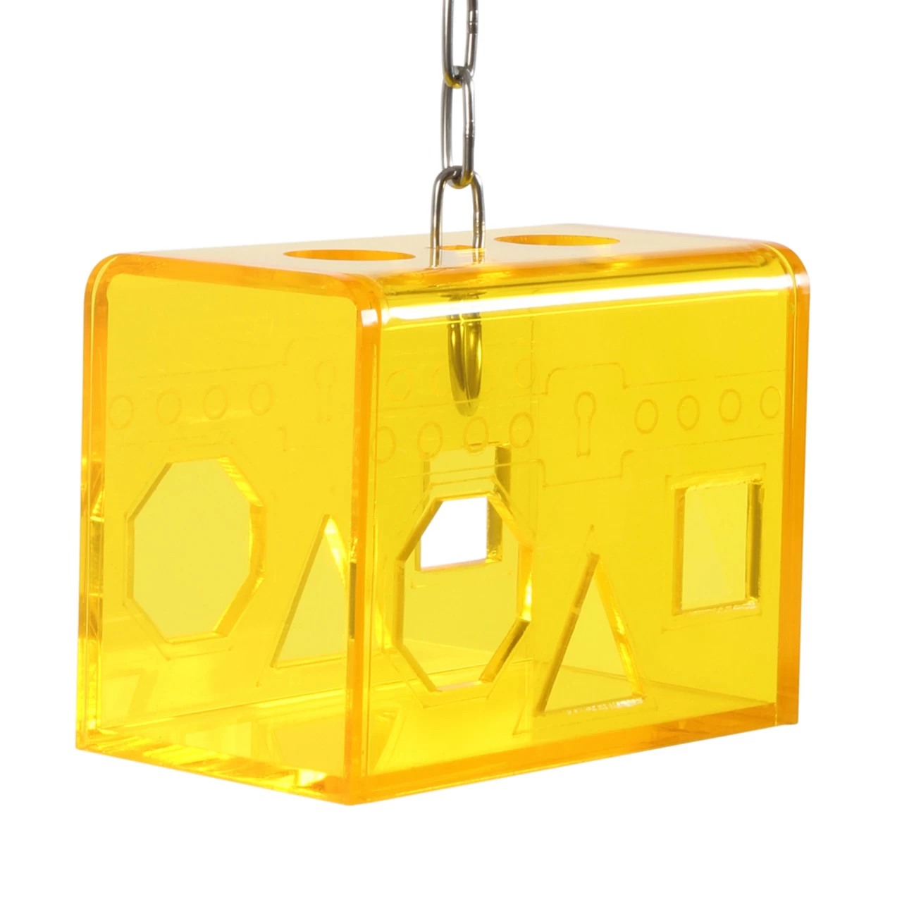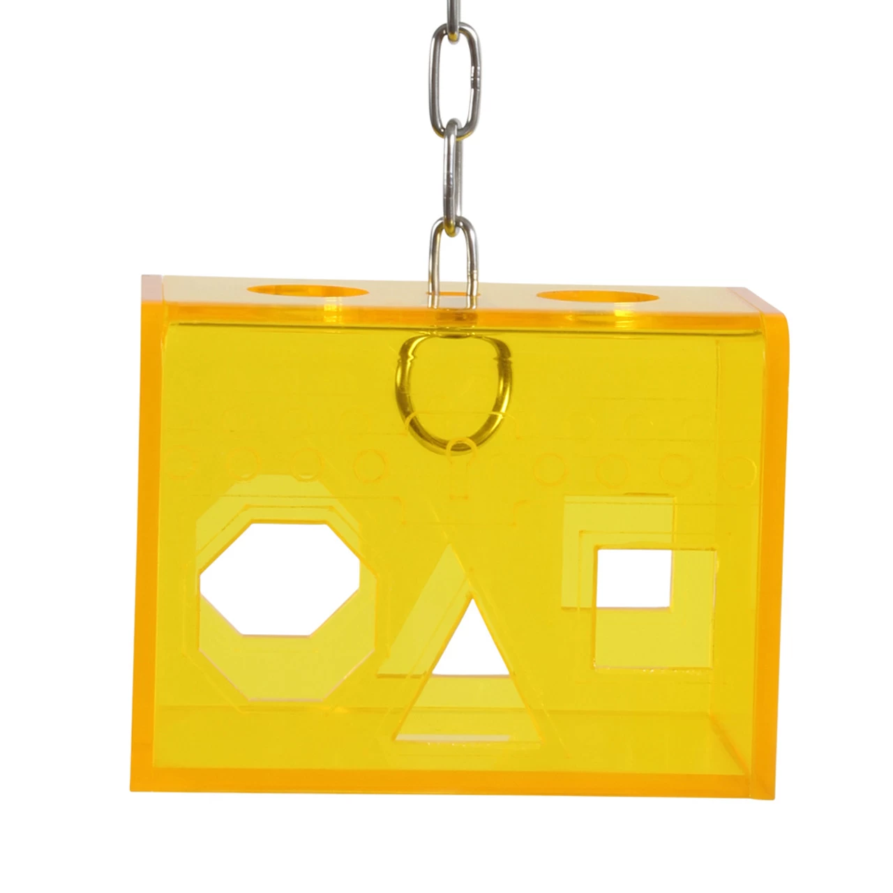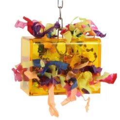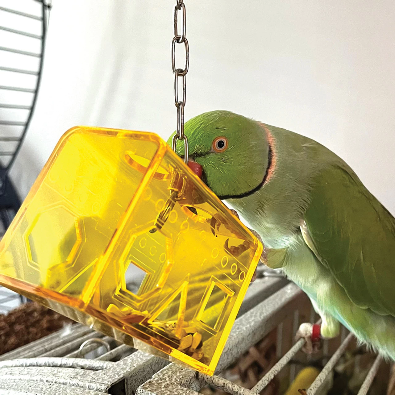 The see-through design of this Treasure Box Foraging Parrot Toy allows your Parrot to easily see the rewards inside. There various shaped holes around the toy allow access to the goodies inside but also make it challenging for them to be removed.