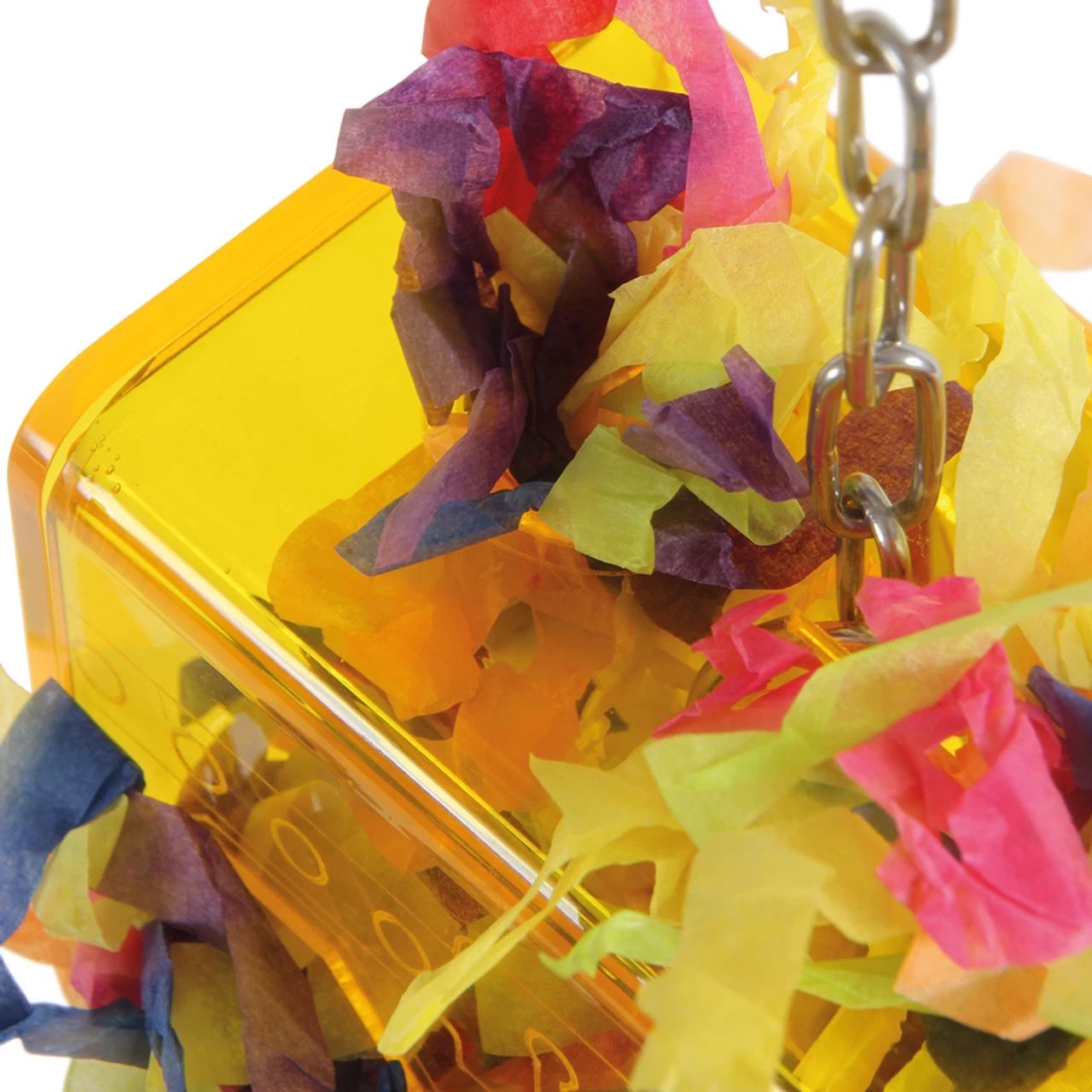 Filling the Treasure Box with shredded paper allows you to hide smaller treats inside that might normally be too easily removed. There are lots of other ways you and your Parrot can enjoy using your Treasure Box Toy.