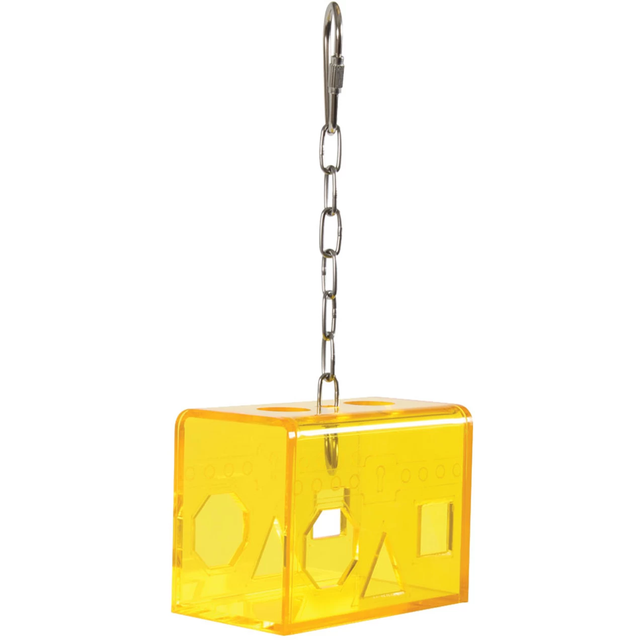 The see-through design of this Treasure Box Foraging Parrot Toy allows your Parrot to easily see the rewards inside. There various shaped holes around the toy allow access to the goodies inside but also make it challenging for them to be removed.