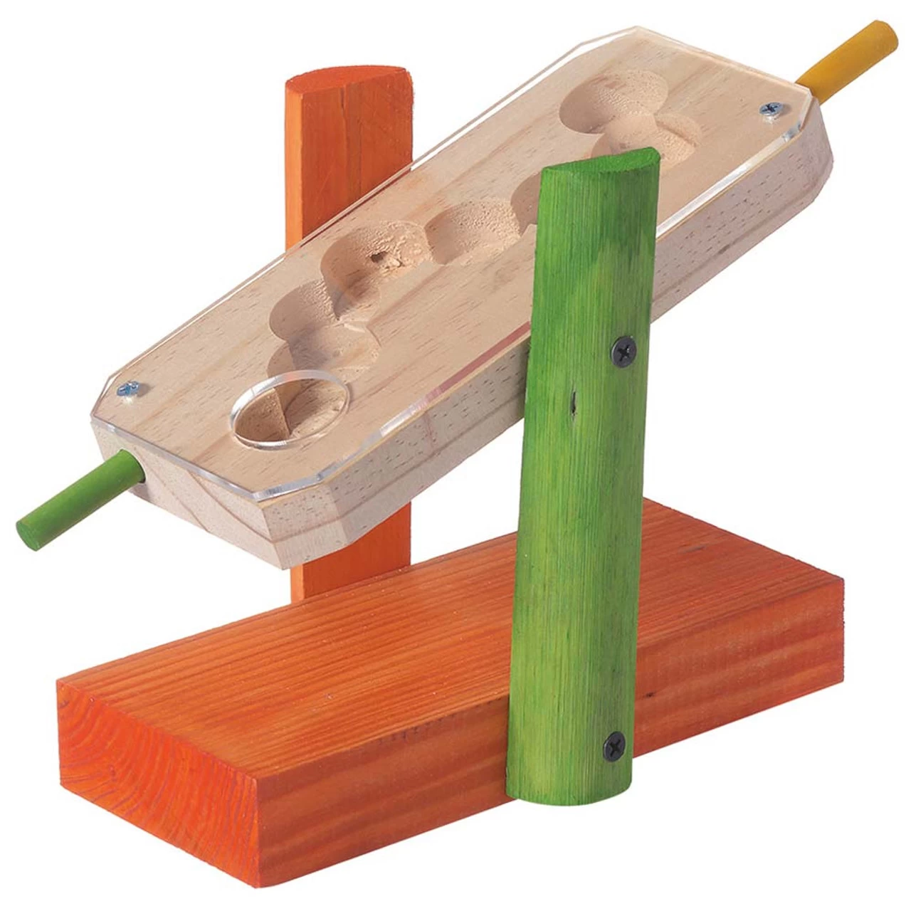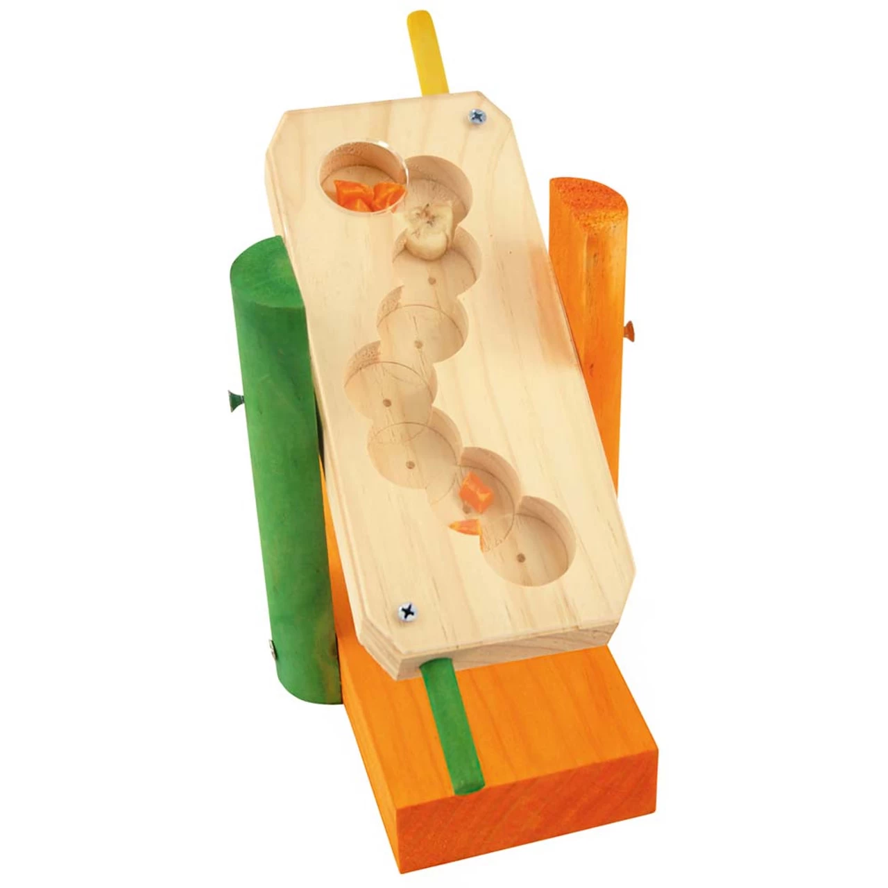 Place treats inside and tilt the seesaw back until they move down inside the track. Your clever Parrot has to work out how to move the see saw up and down to make their rewards travel back down towards the hole where they can retrieve them.