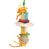 The plastic beads and wood rings have been threaded onto the rope, for your bird to have fun removing.