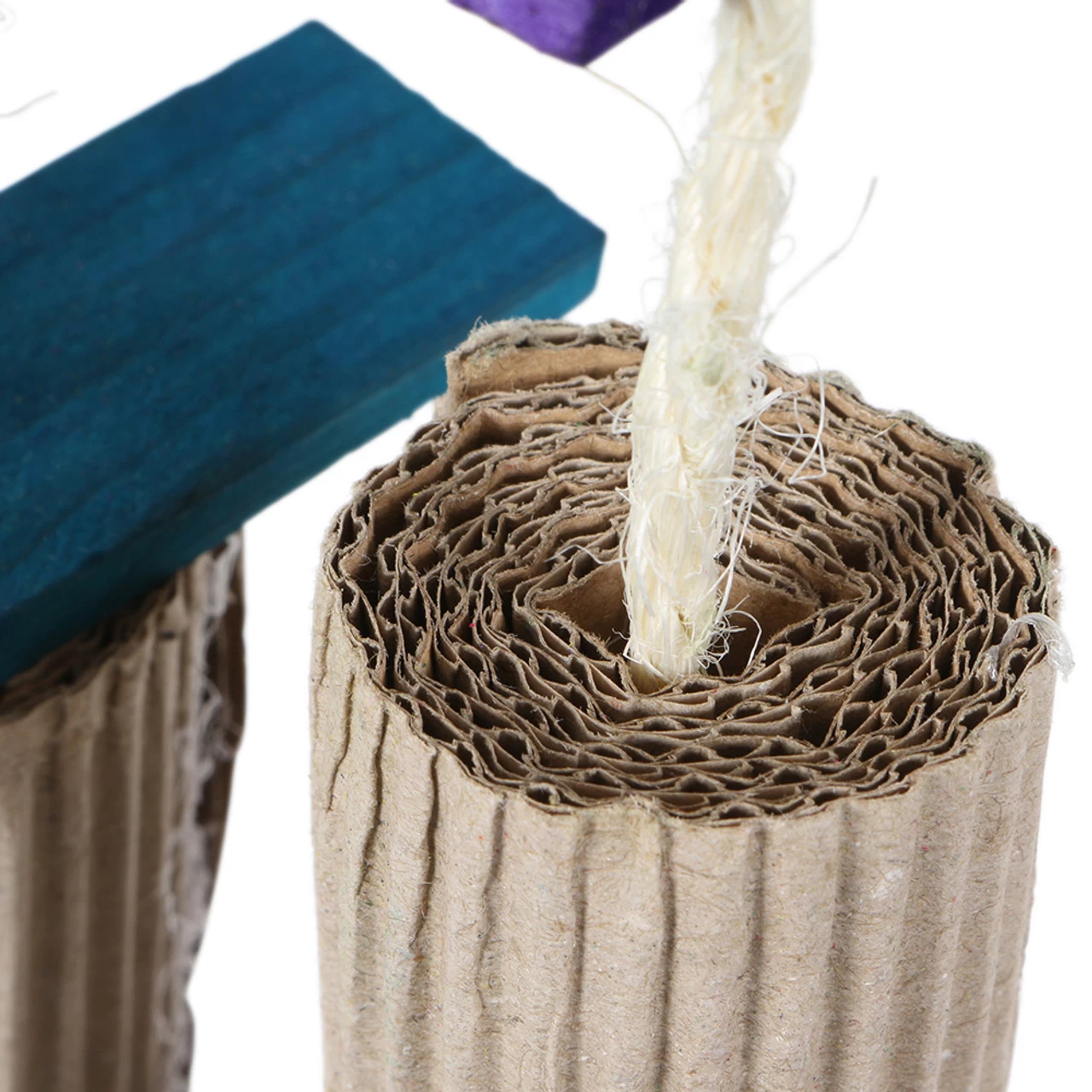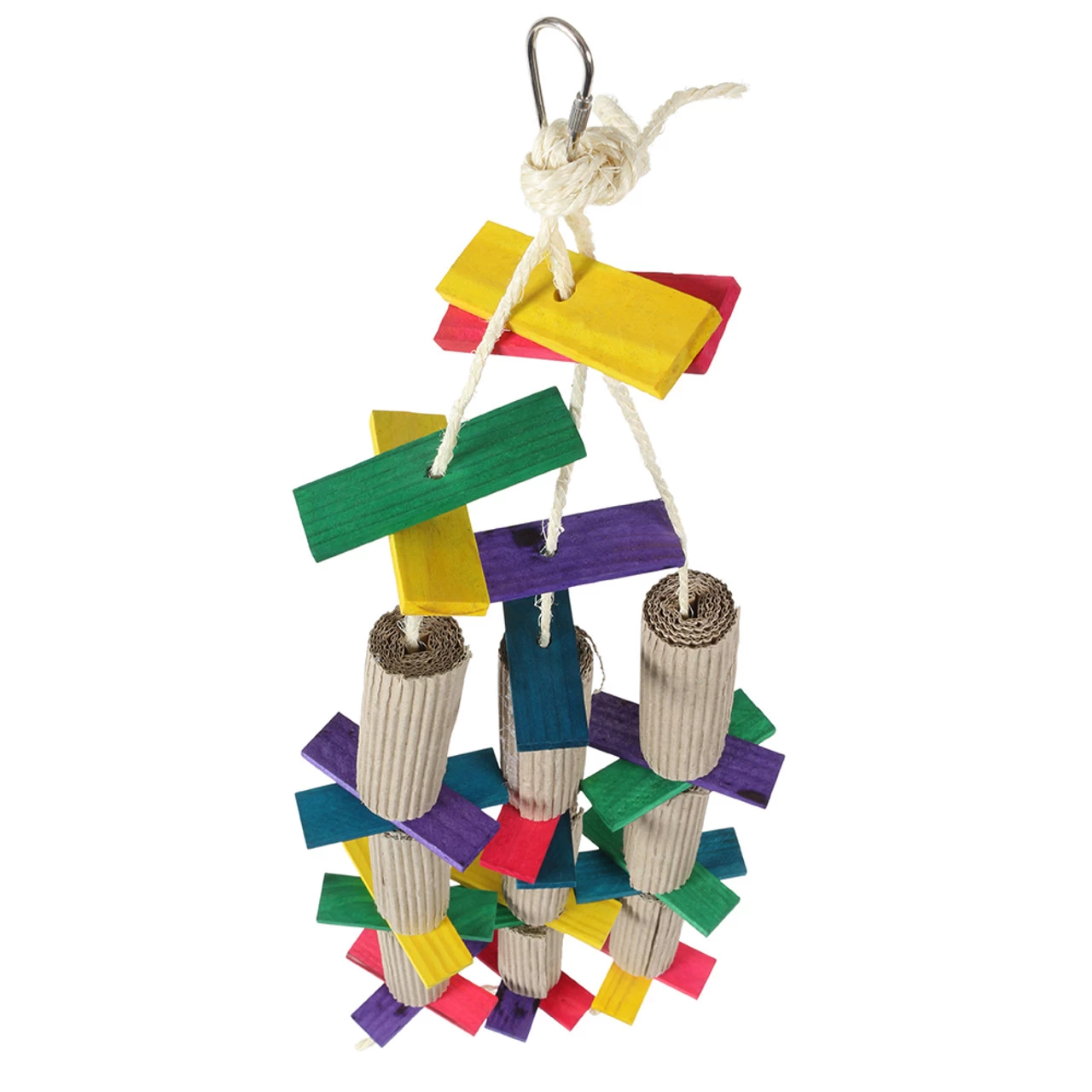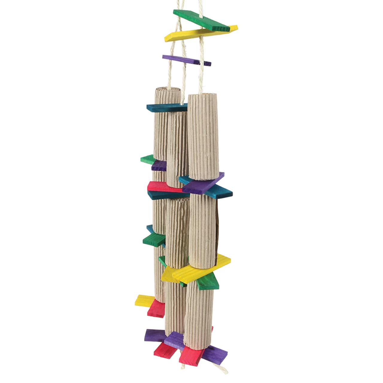 There is plenty to chew, rip and shred. You can push treats inside the ends of the corrugated cardboard rolls for your bird to retrieve, providing further mental stimulation.