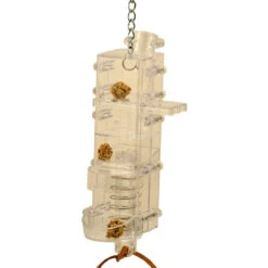 The Tug N Slide Foraging Tower Parrot Toy is made from durable polycarbonate, ready and waiting for any beak.