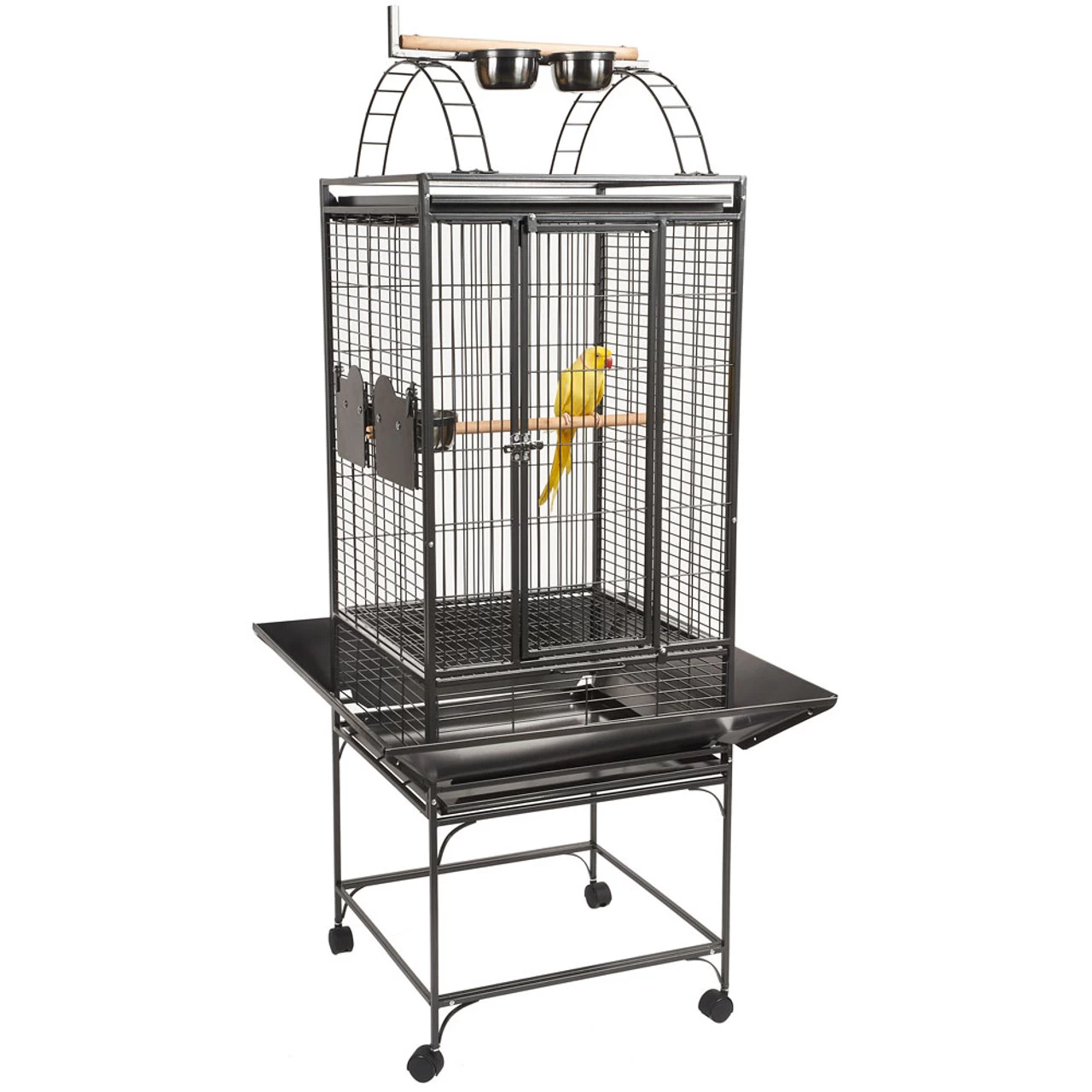 The play top section has its own tray, which collects any mess your bird makes. To make your life easier it can be removed for cleaning. You may also choose to remove the tray whilst your Parrot is inside their cage to allow more light in.