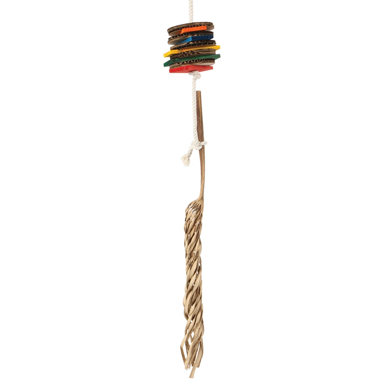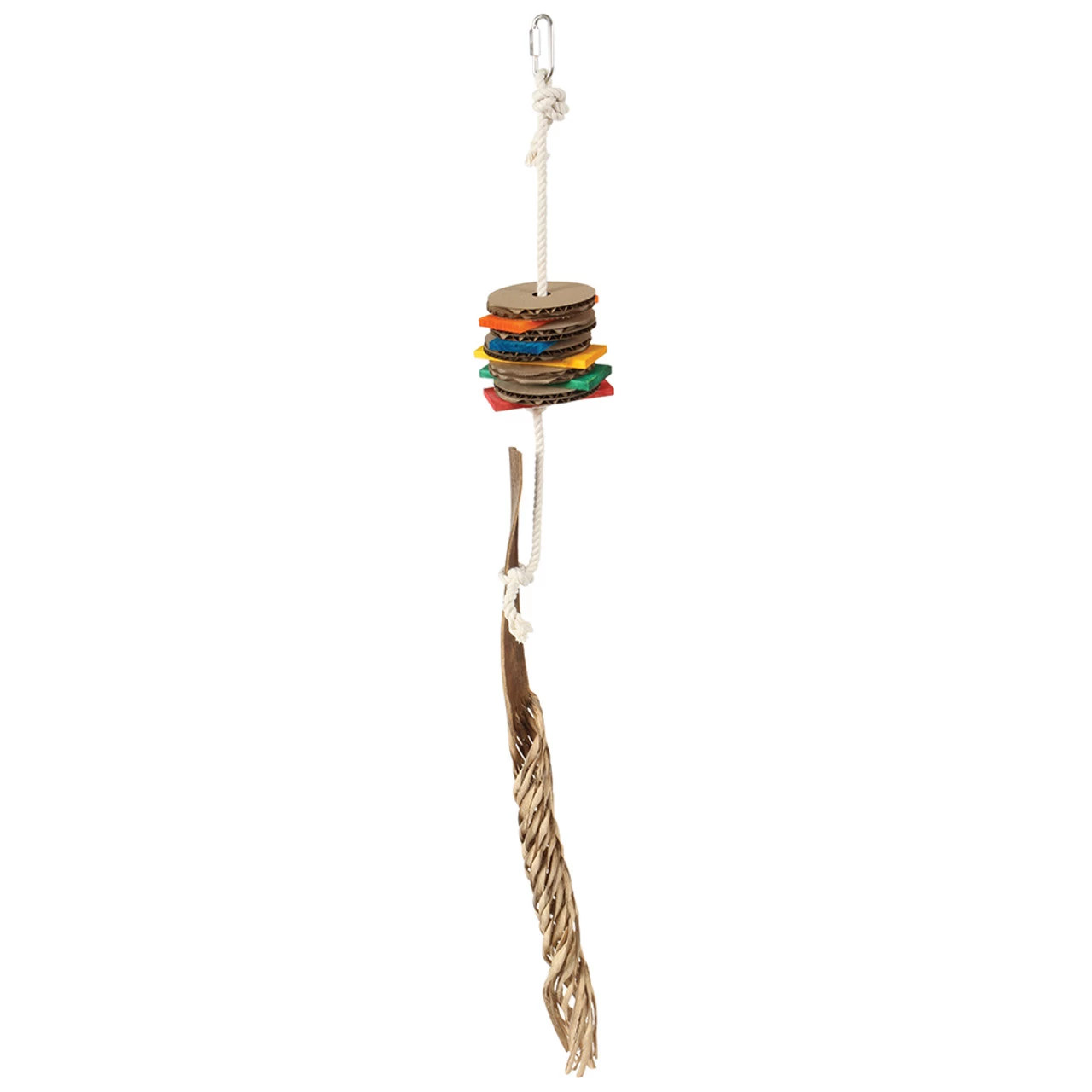 The coloured wood slats pieces and cardboard slices are fun to shred and chew, keeping your Parrot’s feet and their ever-growing beak active and healthy.