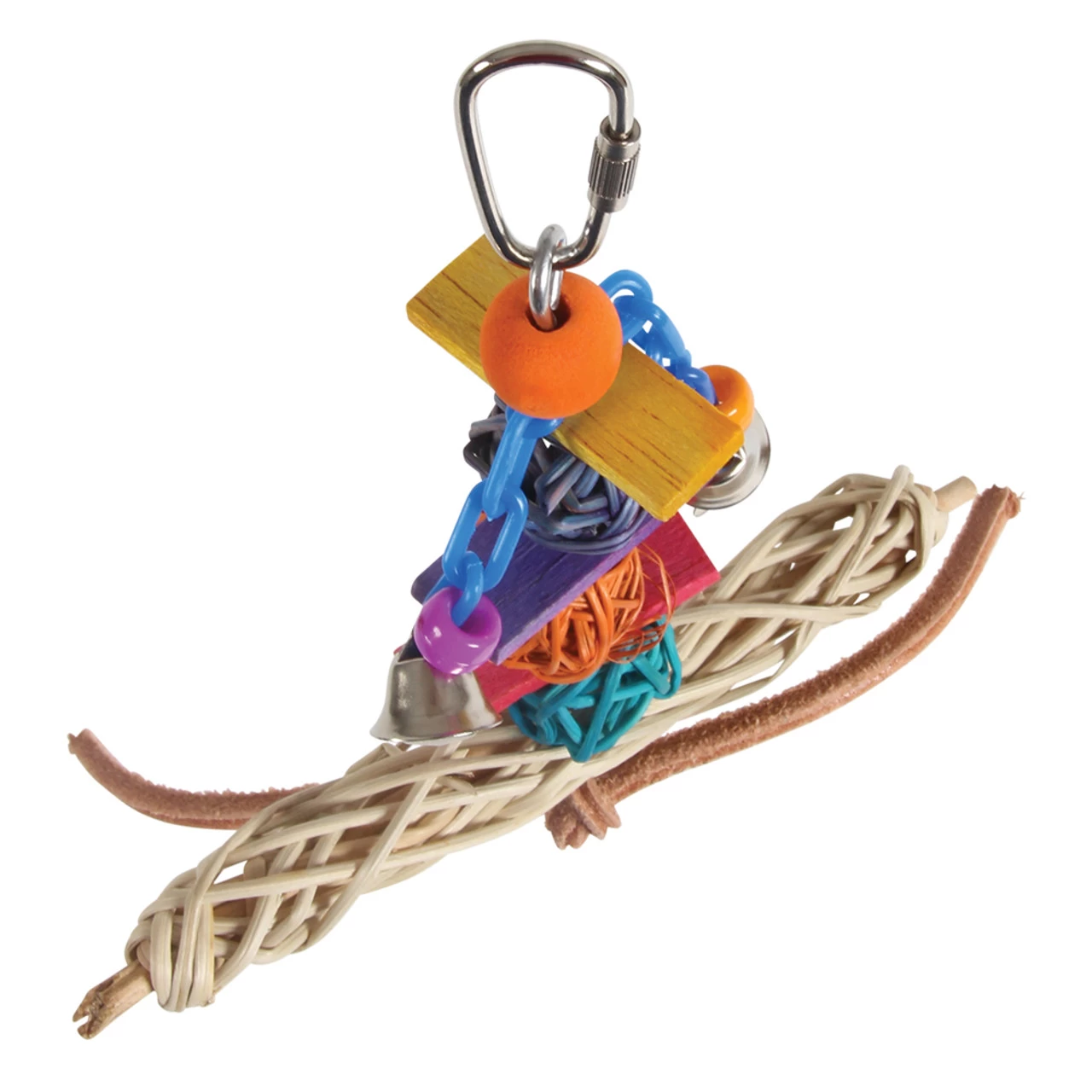 Use the metal pear link provided to quickly and securely fasten this toy onto your Parrot’s cage or play gym stand.