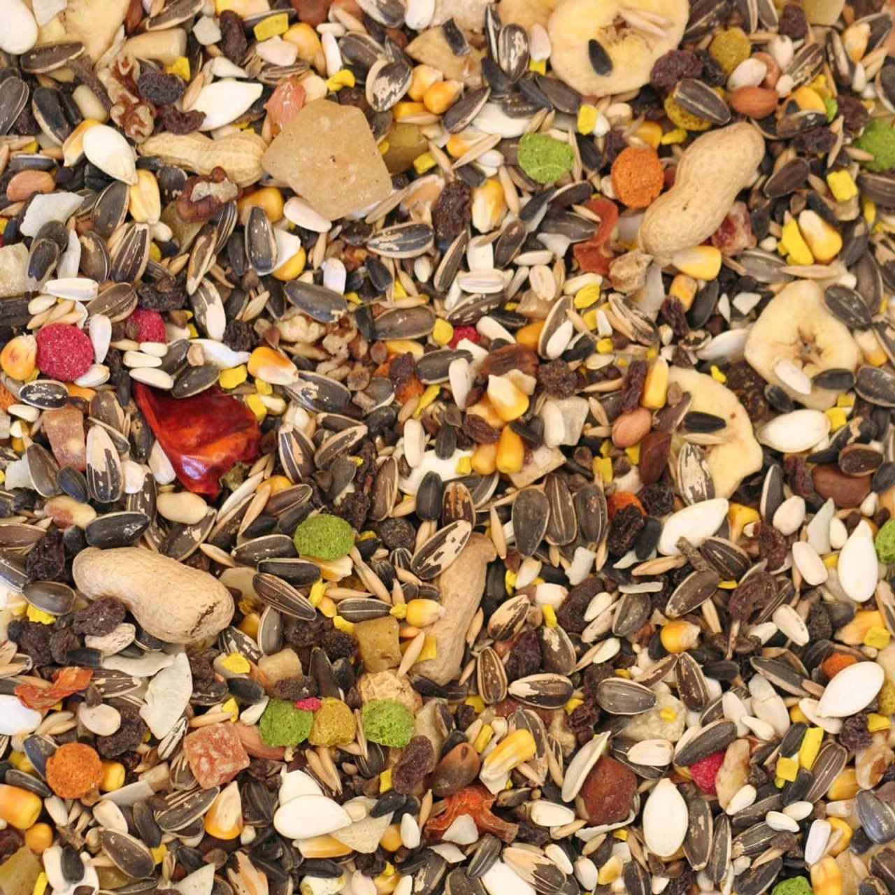 It contains a wide variety of tasty, nutritious seeds, exotic fruits and nuts that provide all the protein, carbohydrate, fat, vitamin and mineral requirements your Parrot needs for a healthy, well balanced diet when fed with fresh fruit and vegetables.