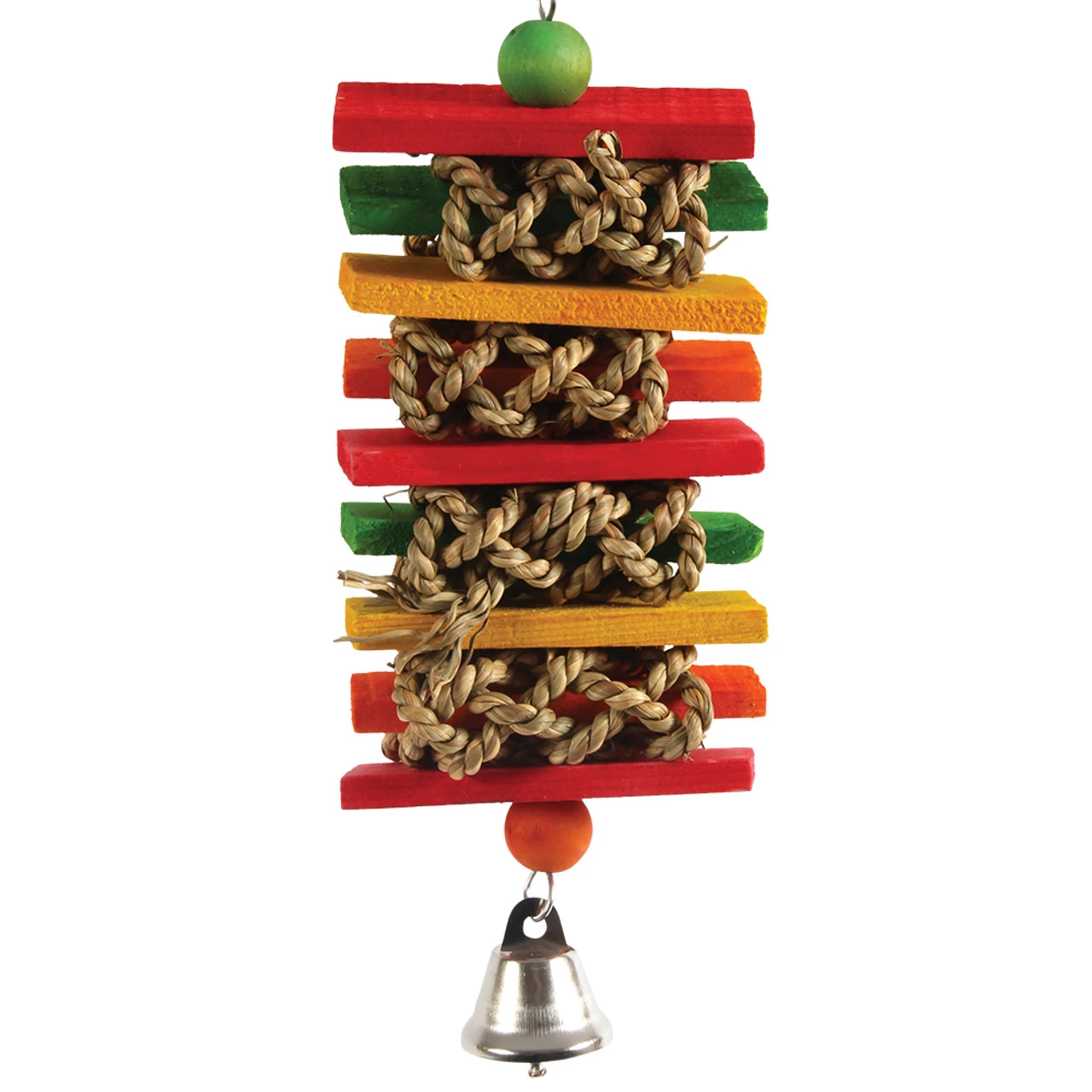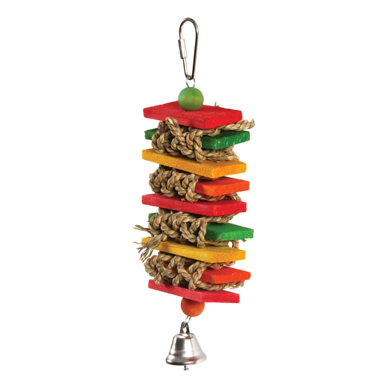 This Woven Grass Slats Parrot Toy is sure to be a big hit at play time, with colourful wood to chew and woven seagrass rope to unravel.